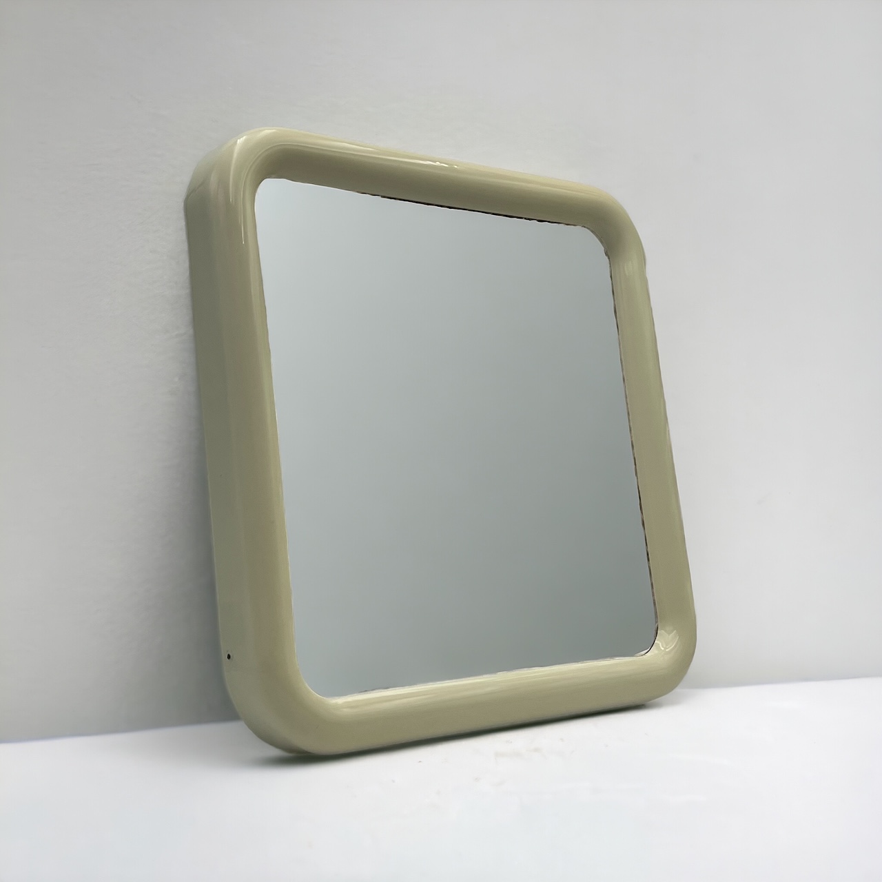 Space Age Square Wall Mirror in Beige 1970s