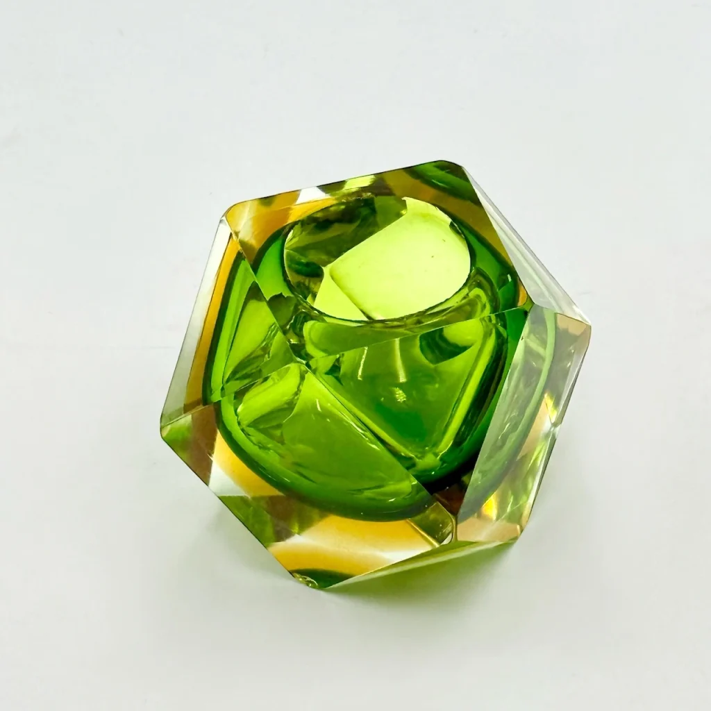 Faceted Sommerso Glass Vase in Green and Ambe…