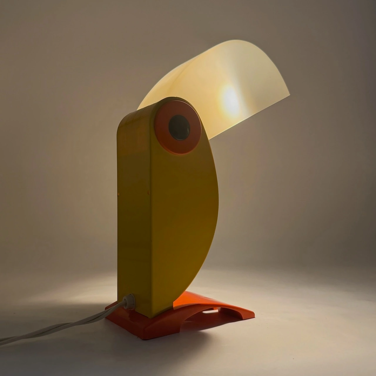 Compact yet visually impactful, the Toucan lamp works beautifully as a bedside lamp, desk accent or collectible statement piece in Space Age, pop, or mid-century interiors.
