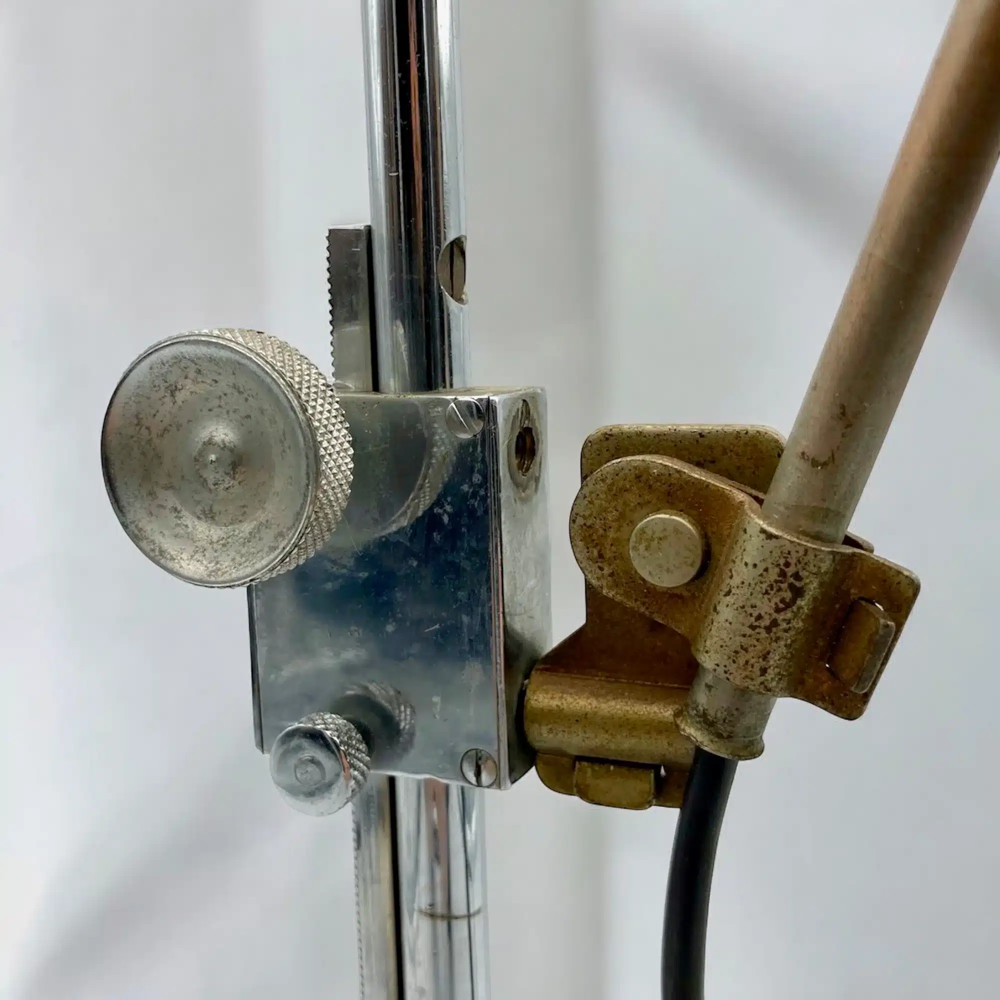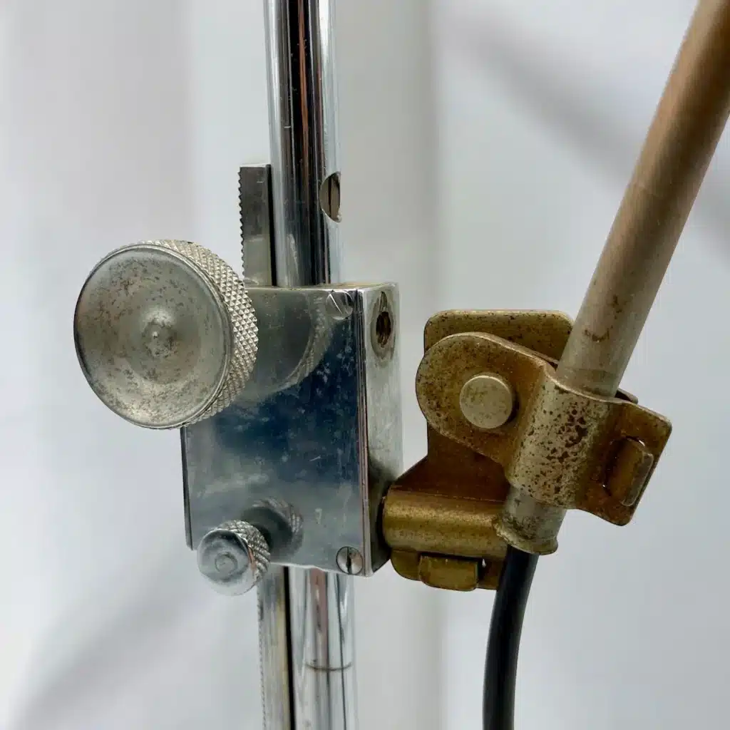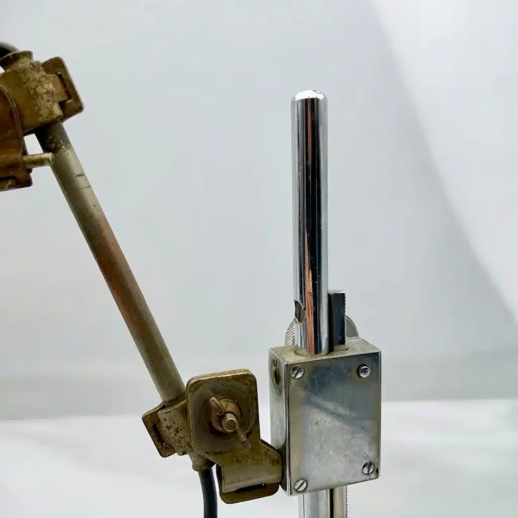 Another peculiarity of this amazing lamp is the adjustable height, obtained thanks to a chromed metal cogwheel.