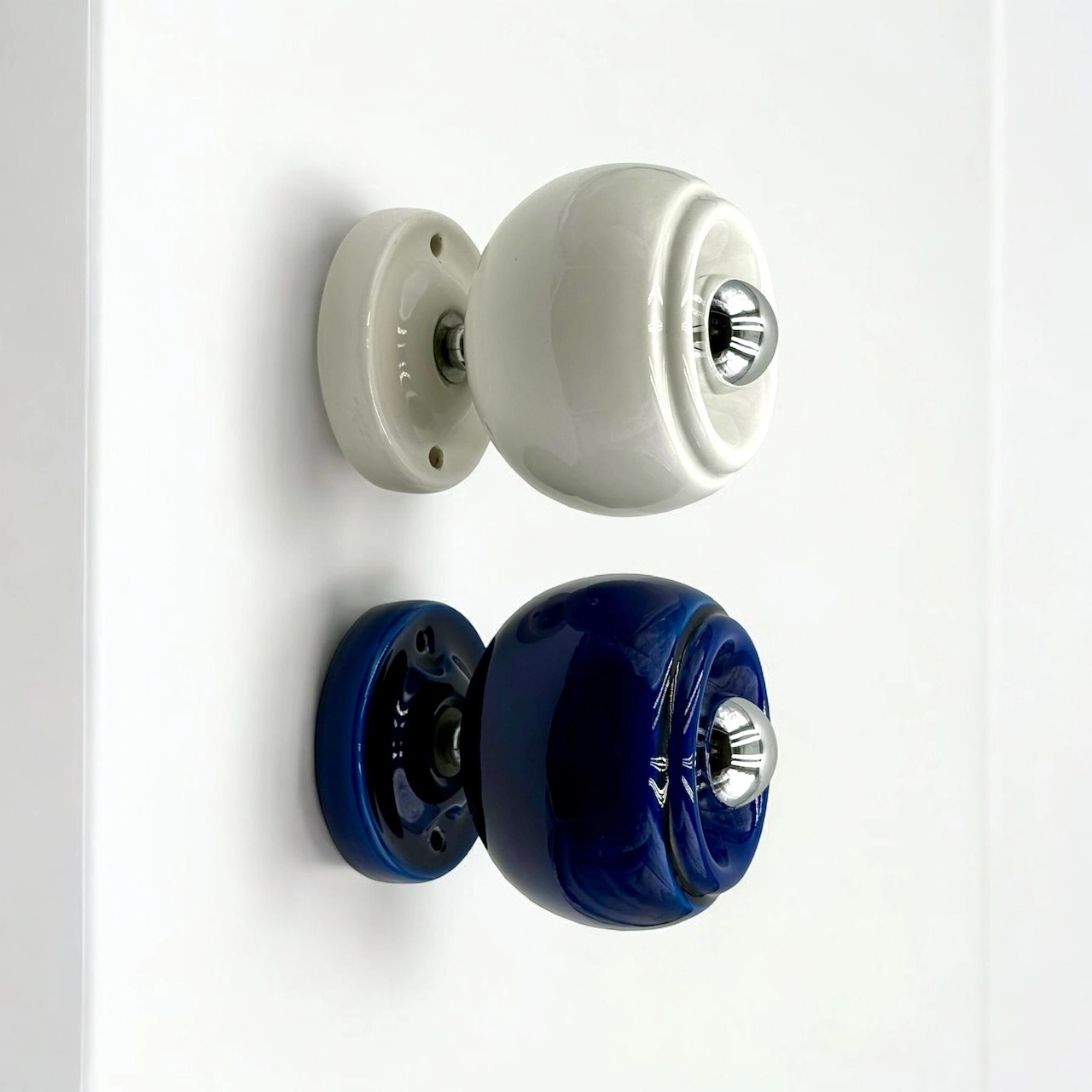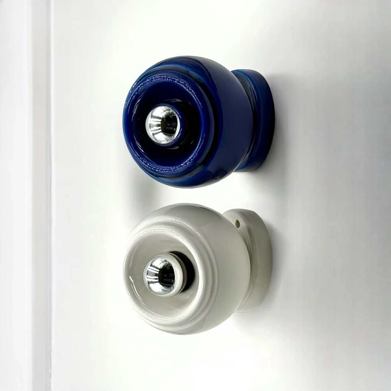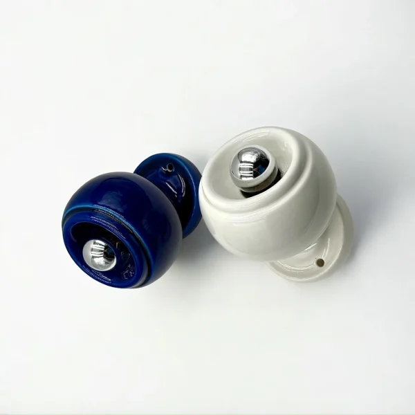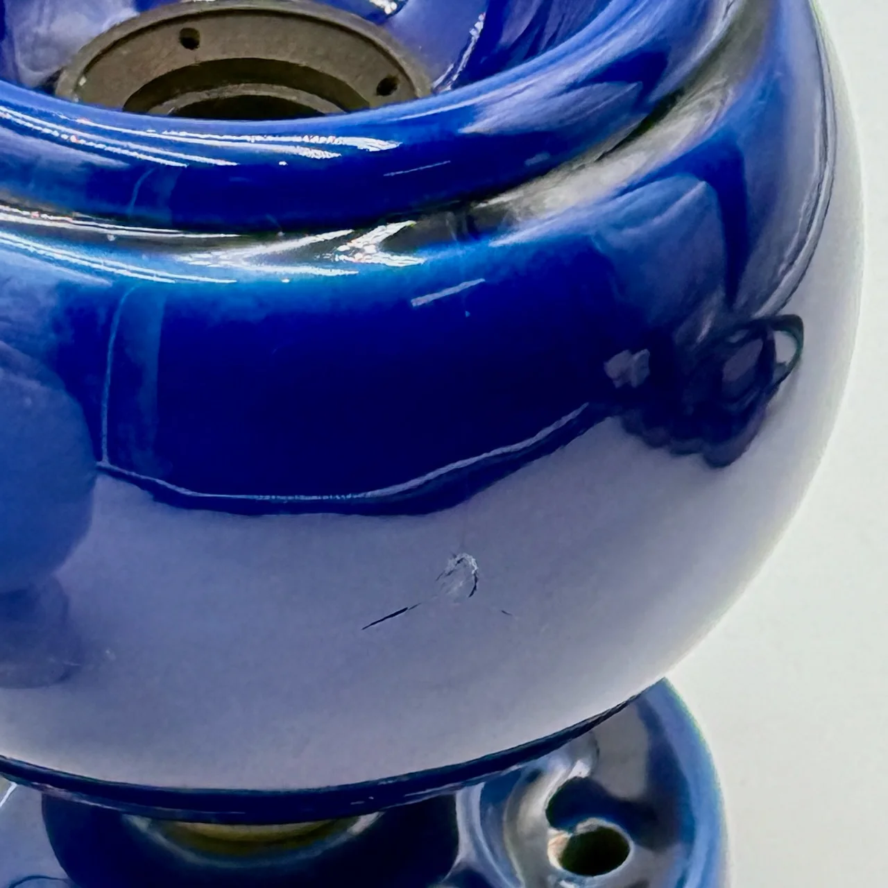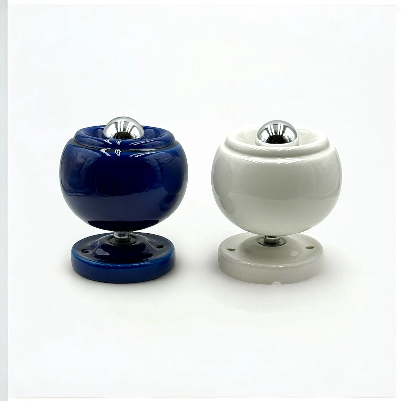 Enhance your space with this rare pair of 70s ceramic lamps, a striking example of Italian design and retro aesthetics. Crafted in Italy during the 1970s, these lamps feature a glossy ceramic body in deep blue and crisp white, creating a bold yet timeless contrast that complements both vintage and contemporary interiors.