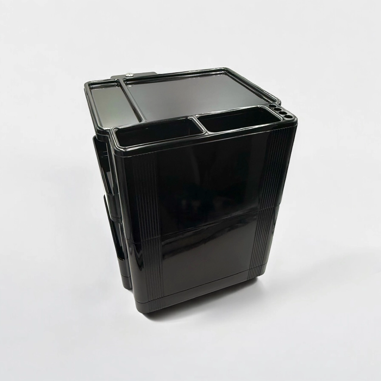 The Superstile by Neolt in glossy black is a 70s organiser trolley that balances style and function with ease – adding a dash of sophistication to your space.