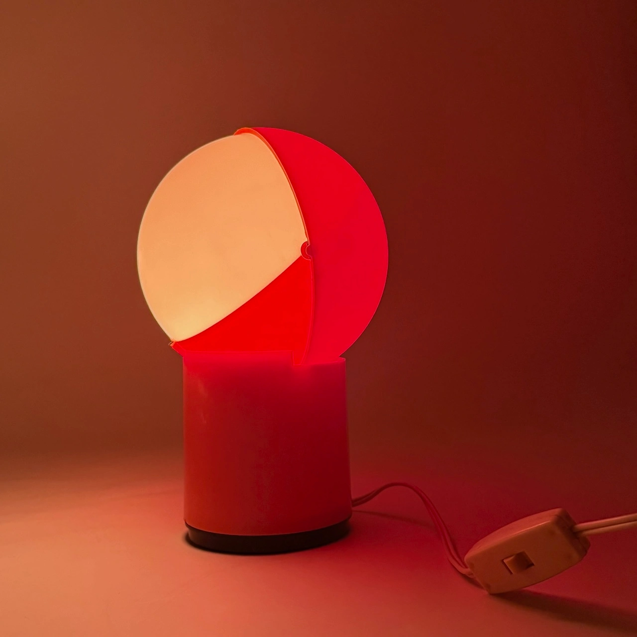 item. desk lamp, bedside lampmaker. gagiplast.model. sfera notteperiod. 70scountry. Italymaterial. plasticcolor. orangedimensions (cm). 12.5 x 12.5 x 19 Hcondition. excellent. minor traces of wear (superficial marks)art. # 1725