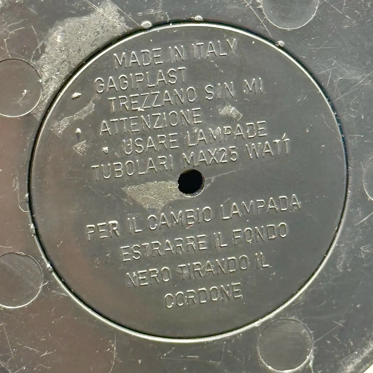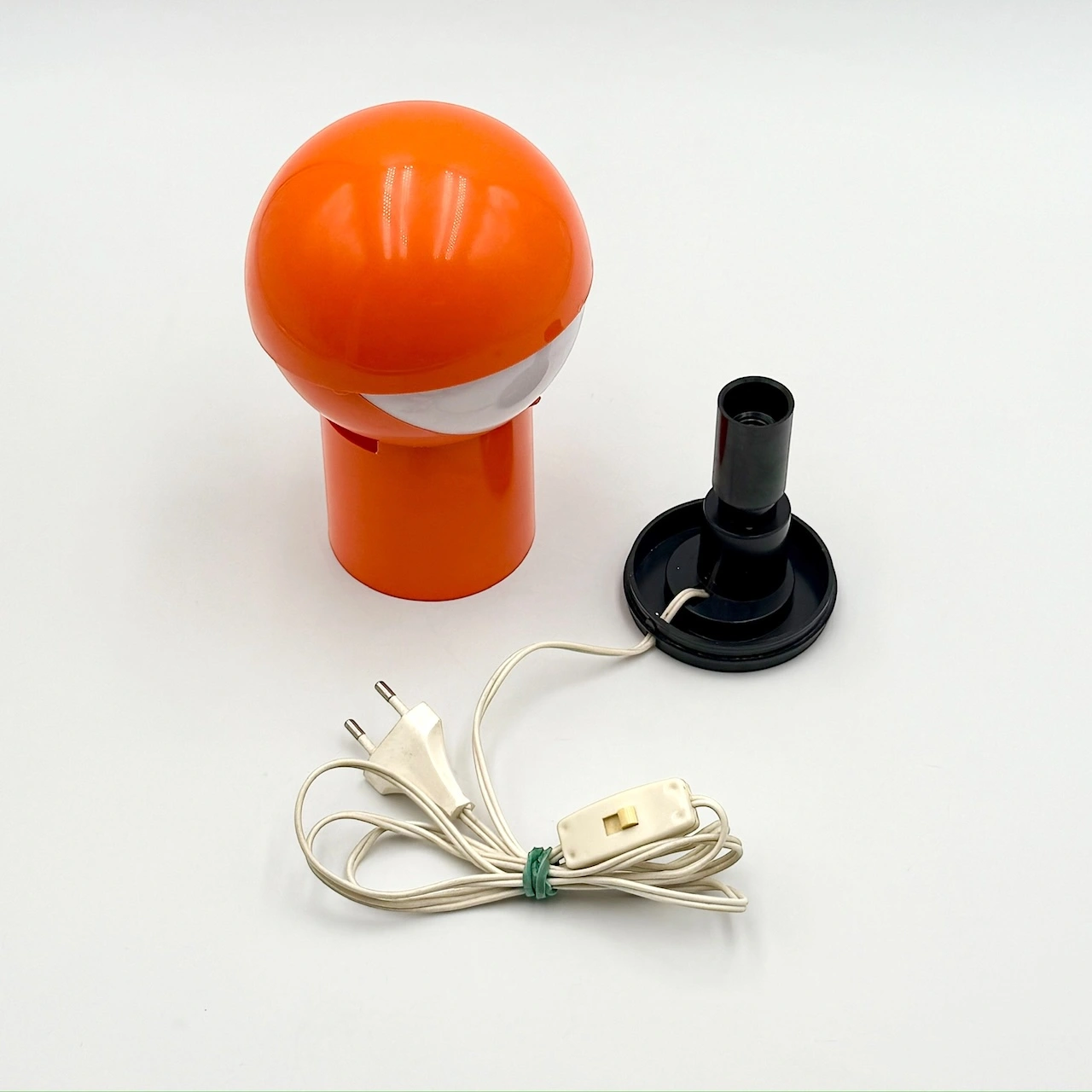 This original piece retains its brand label beneath the base and includes all components from its original 1970s production. A rare and collectible find for lovers of Italian design and Space Age aesthetics.