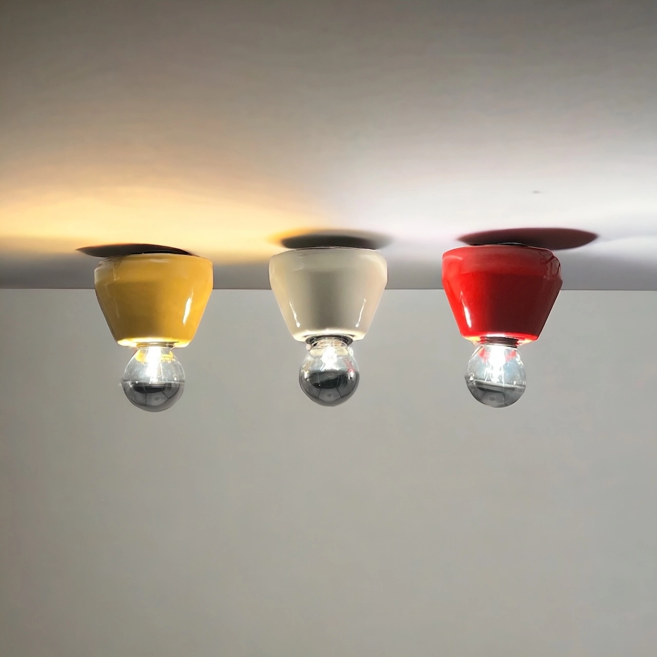 Step into the vibrant ambiance of the 80s Design Lamps with Imago Italys exquisite ceramic flush mount lights. Crafted with a sleek and minimalistic design, these lamps are the epitome of retro chic elegance. Each lamp is adorned with vibrant hues of yellow, red, and beige, evoking the creativity and zest of the era, making them the perfect addition to any vintage-inspired interior.