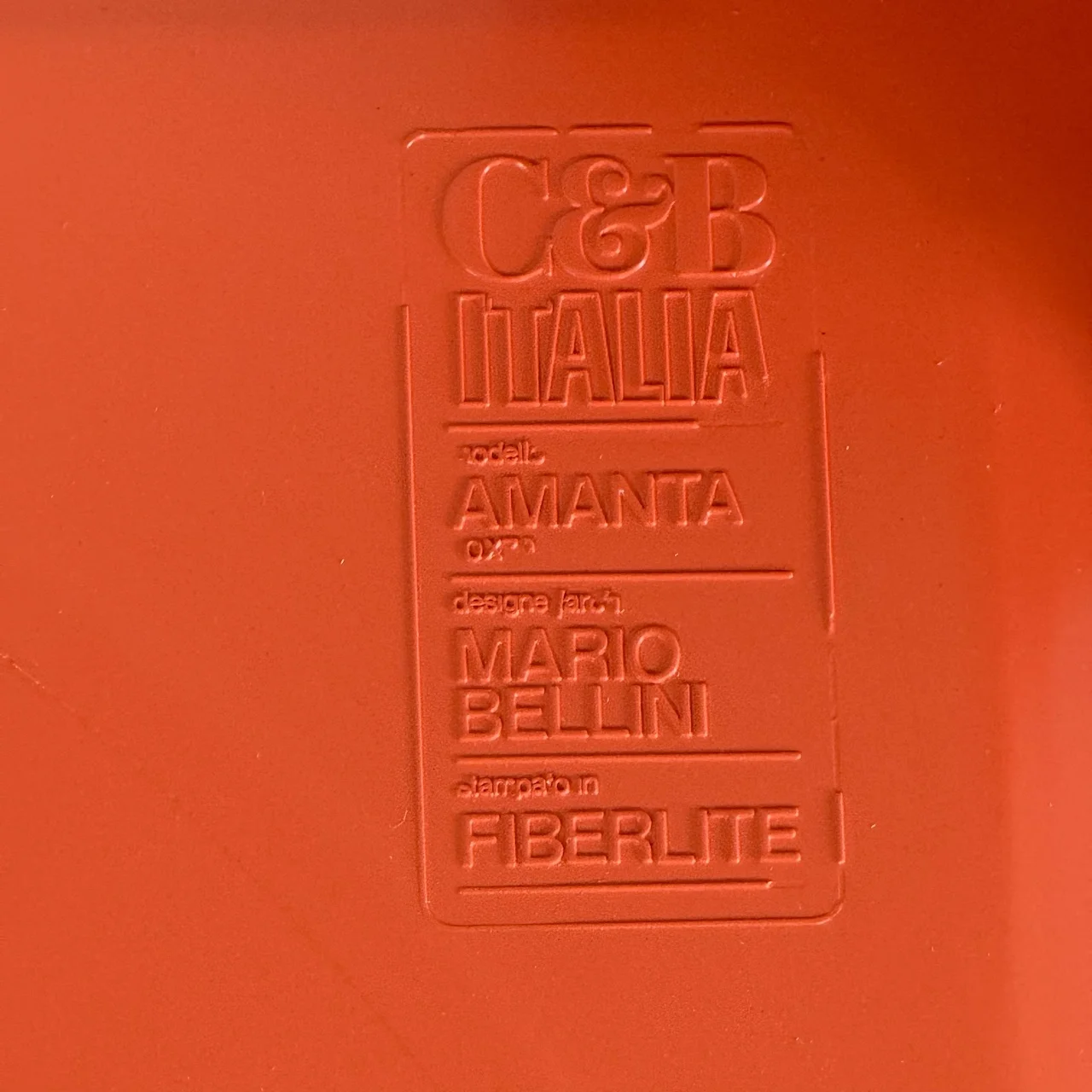 Iconic Amanta table designed by Mario Bellini for C&B / B&B Italia. Crafted from durable fiberglass (Fiberlite) with a vibrant and glossy orange hue.