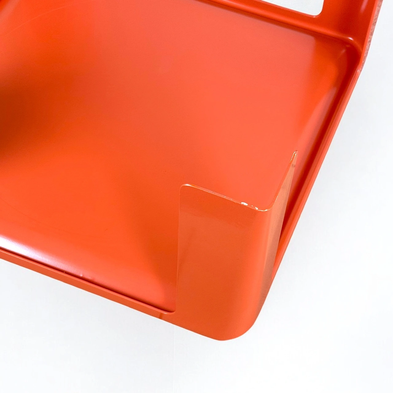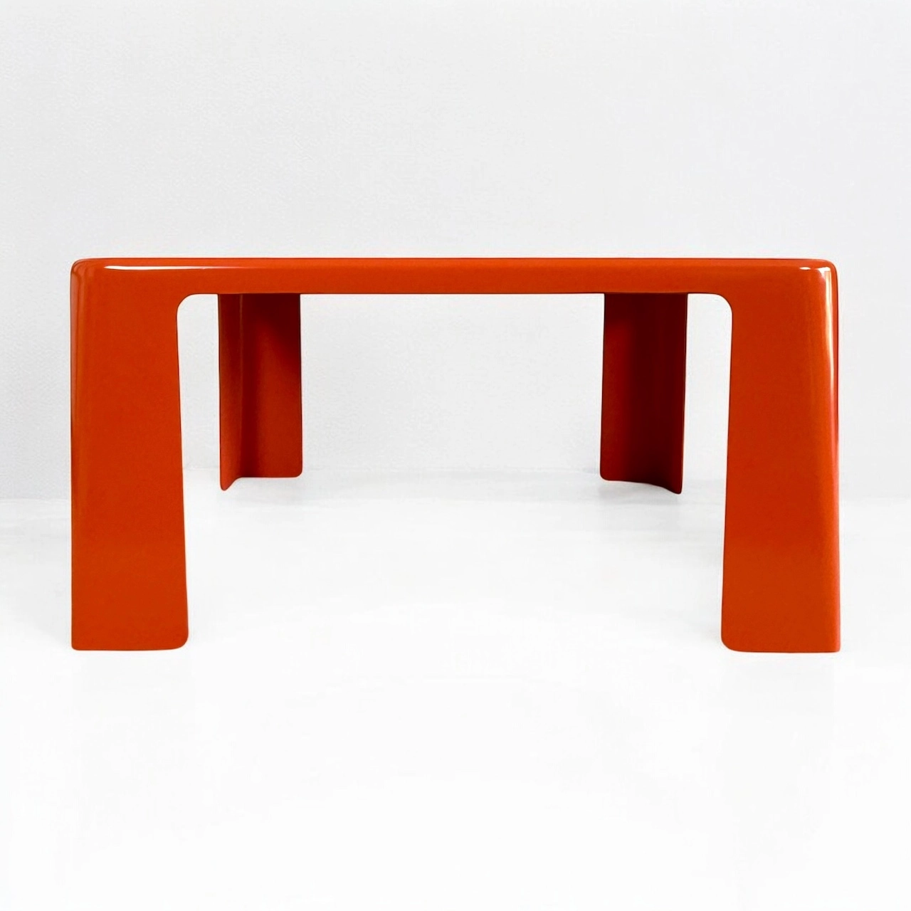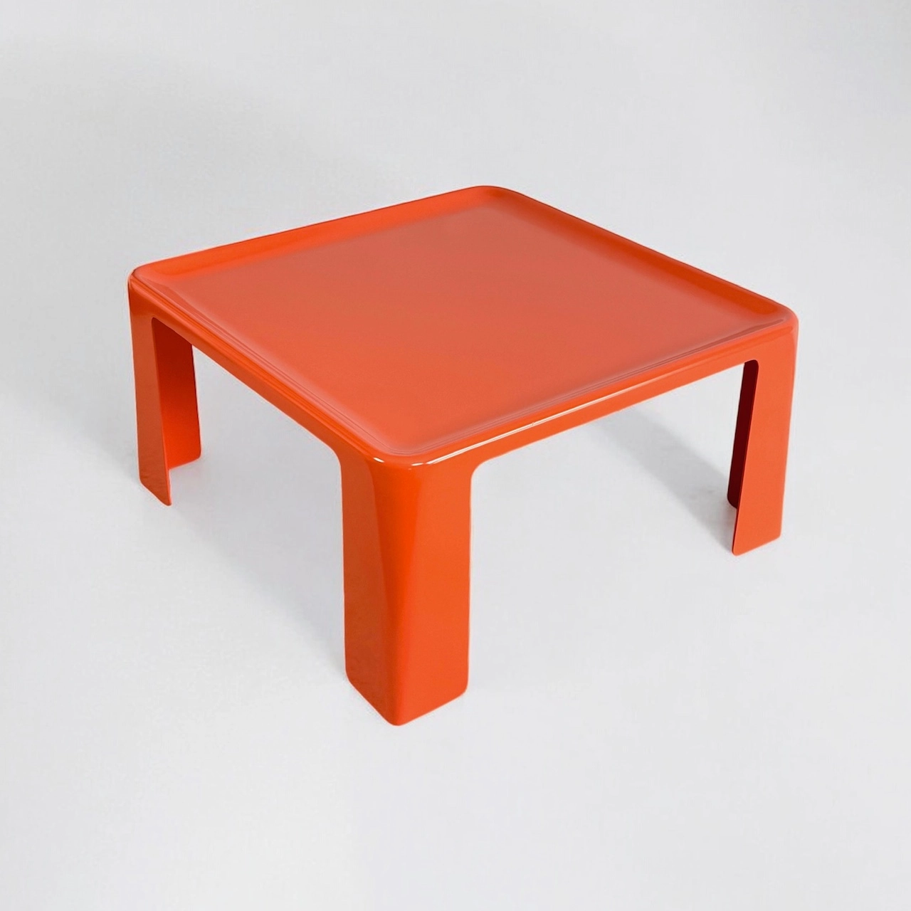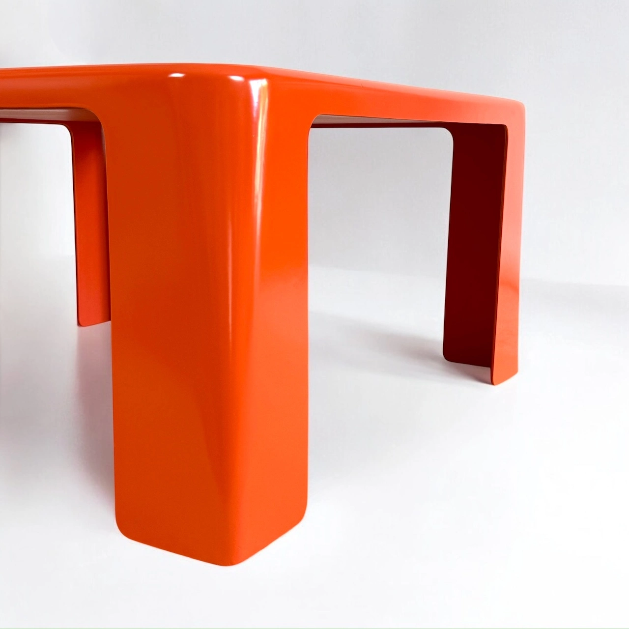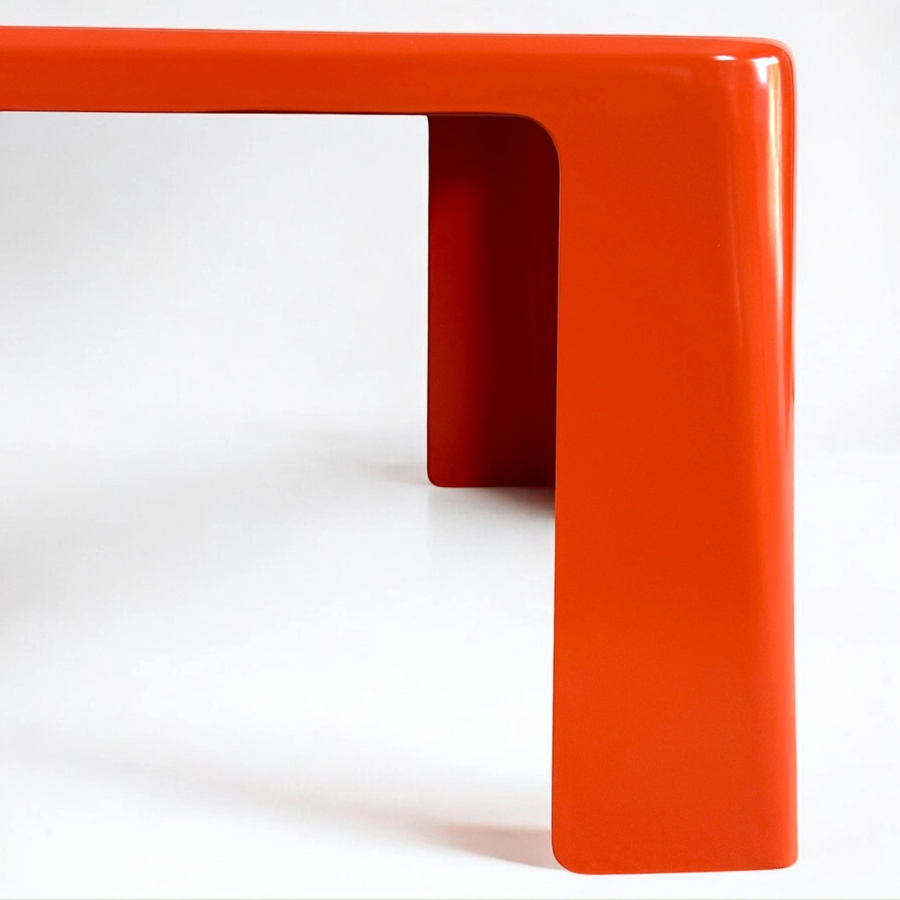 The Amanta Table, designed by Mario Bellini for C&B Italia in the 1960s, is a masterpiece of mid-century modern design. Crafted from durable fiberglass (Fiberlite), this orange coffee table features a square shape with an indented tabletop—an innovative touch that blends functionality with striking aesthetics.
