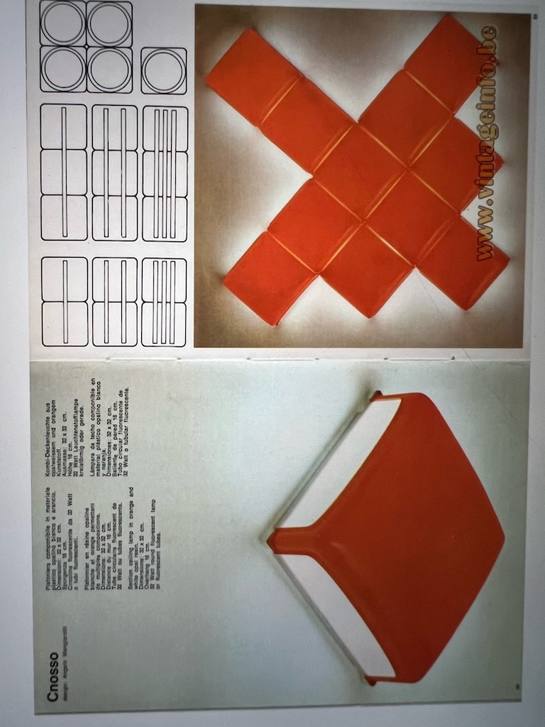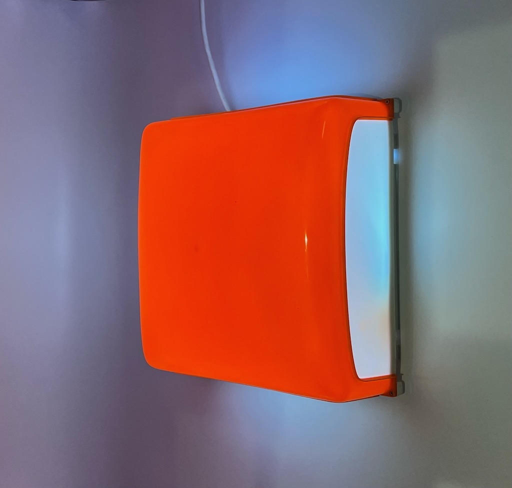 item. wall lamps, ceiling lampsmodel. cnossodesigner. angelo mangiarottimaker. artemideperiod. 60scountry. Italymaterial. acetate, metalcolor. orange, whitedimensions (cm). 32 x 32 x 11condition. excellent. wear consistent with age and use.