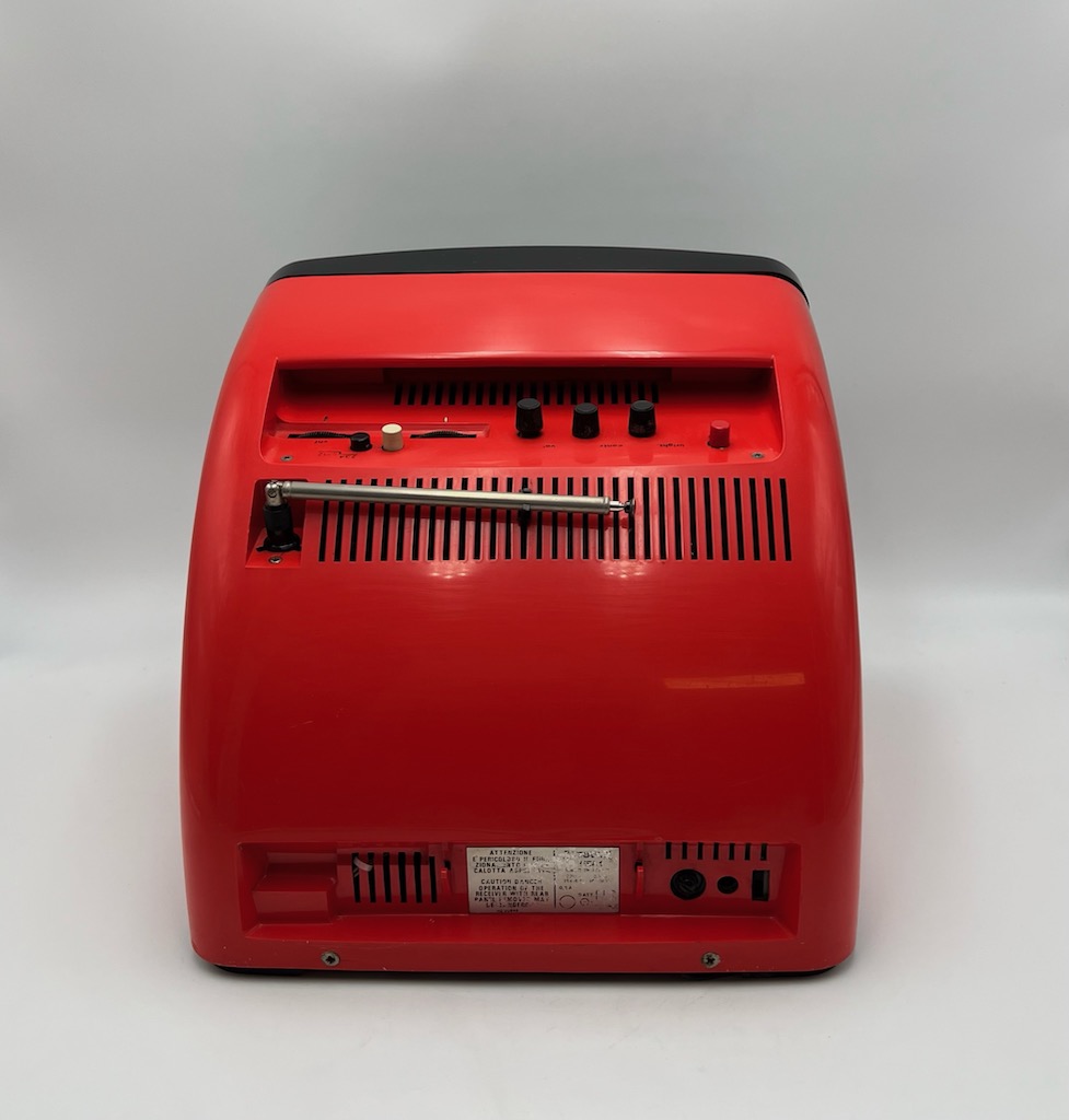 This tv set is a creation of the world famous Rodolfo Bonetto (1929-1991) for Autovox. The legend tells that Bonetto was inspired by the NASA monitors seen on the media during the moon landing in 1969.