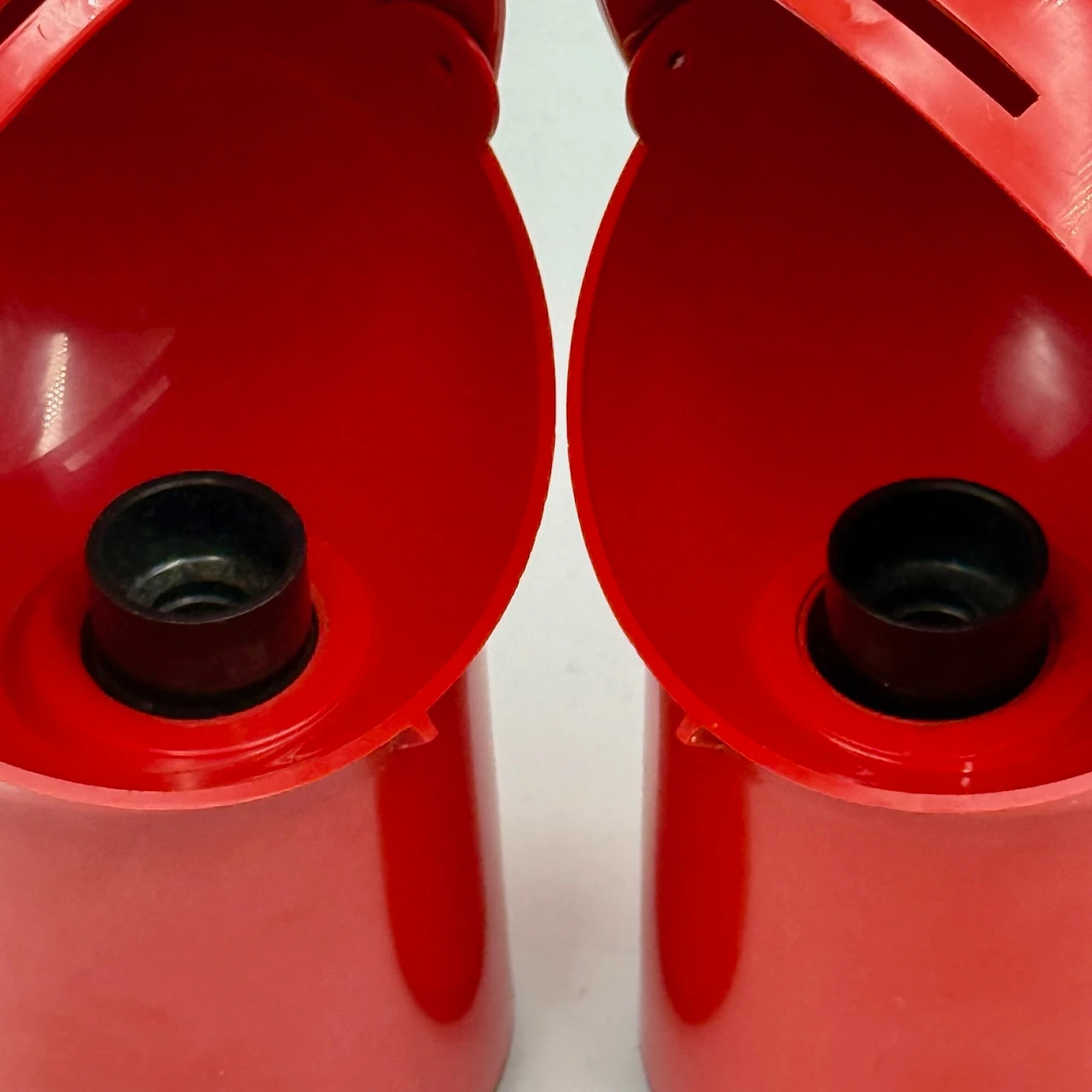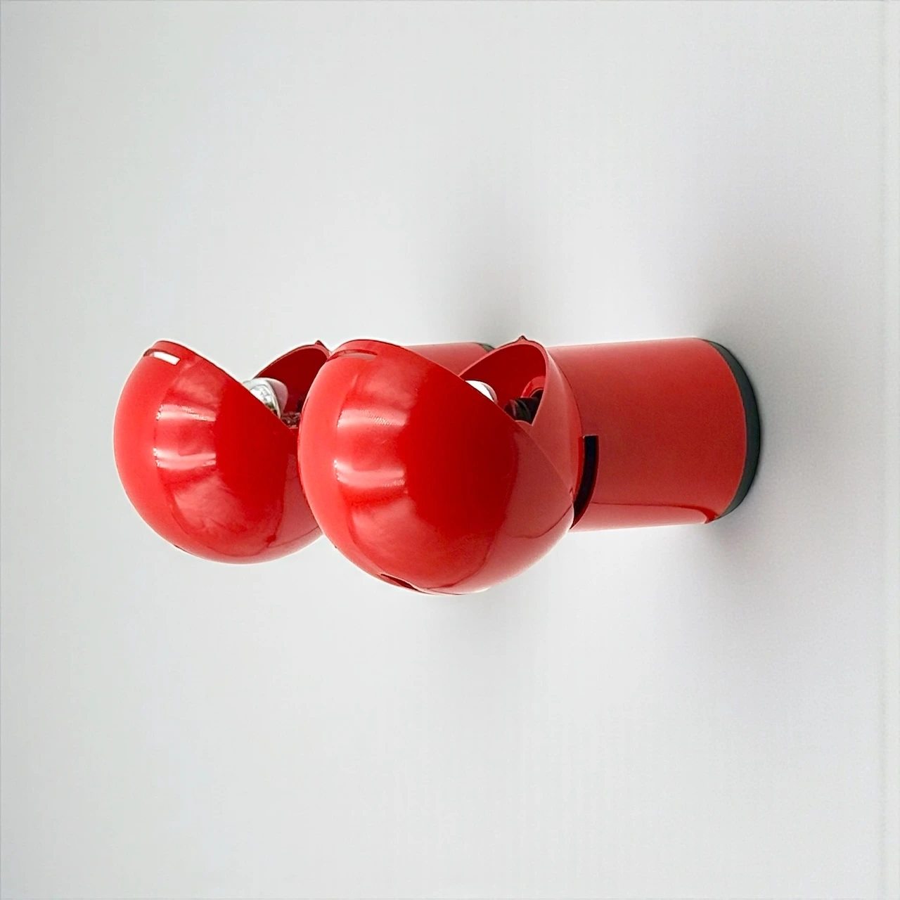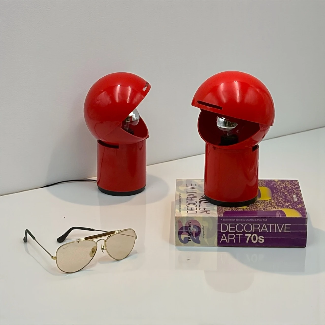 • Condition: excellent vintage condition with minimal signs of age. One lamp shows a very slight deformation of the upper shell caused by previous use of an excessively hot bulb near the vertical opening. Original wiring, plugs and switches are present but differ between the two lamps. In one lamp, the lower central cover has been removed, without affecting functionality.