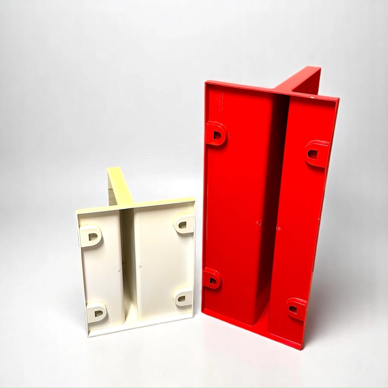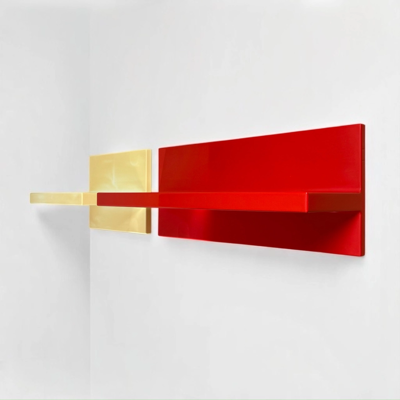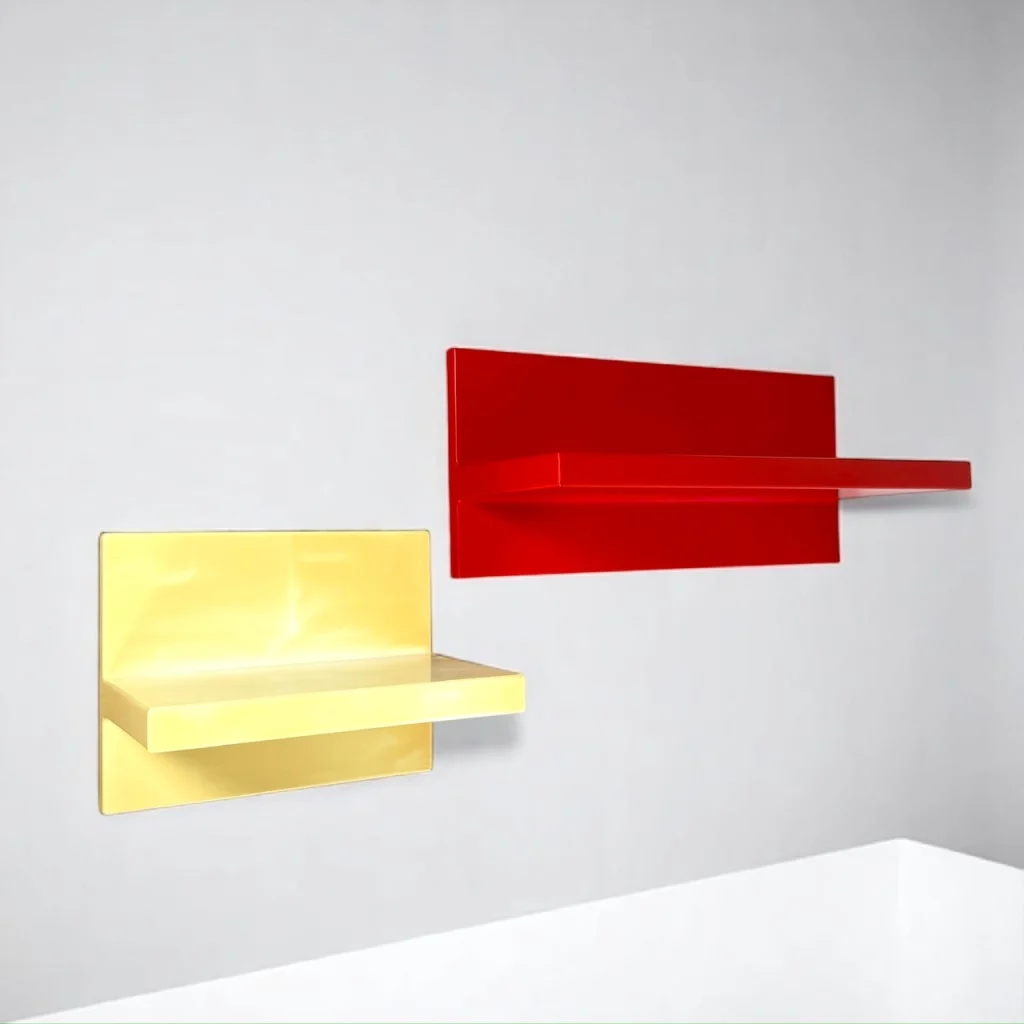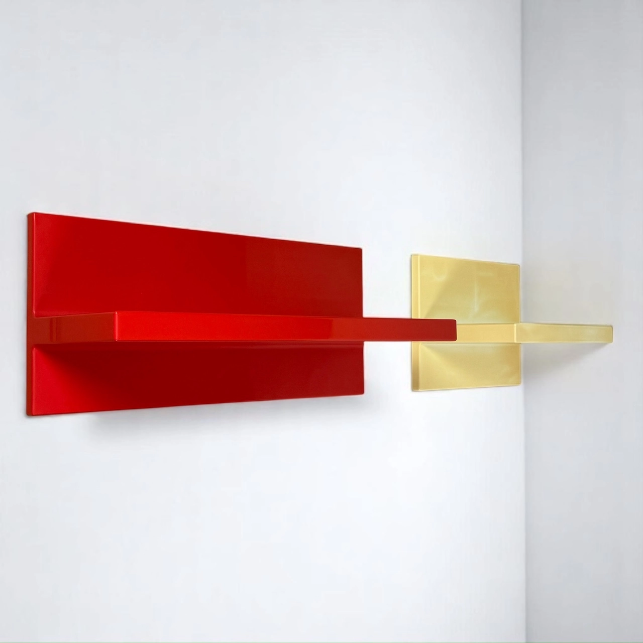 Made in glossy thermoformed plastic, these iconic wall-mounted units showcase bold, geometric lines in two vivid tones: brilliant red and aged white. Both shelves are structurally sound and visually impactful, offering a rare chance to own an authentic piece of Kartell’s radical design era.