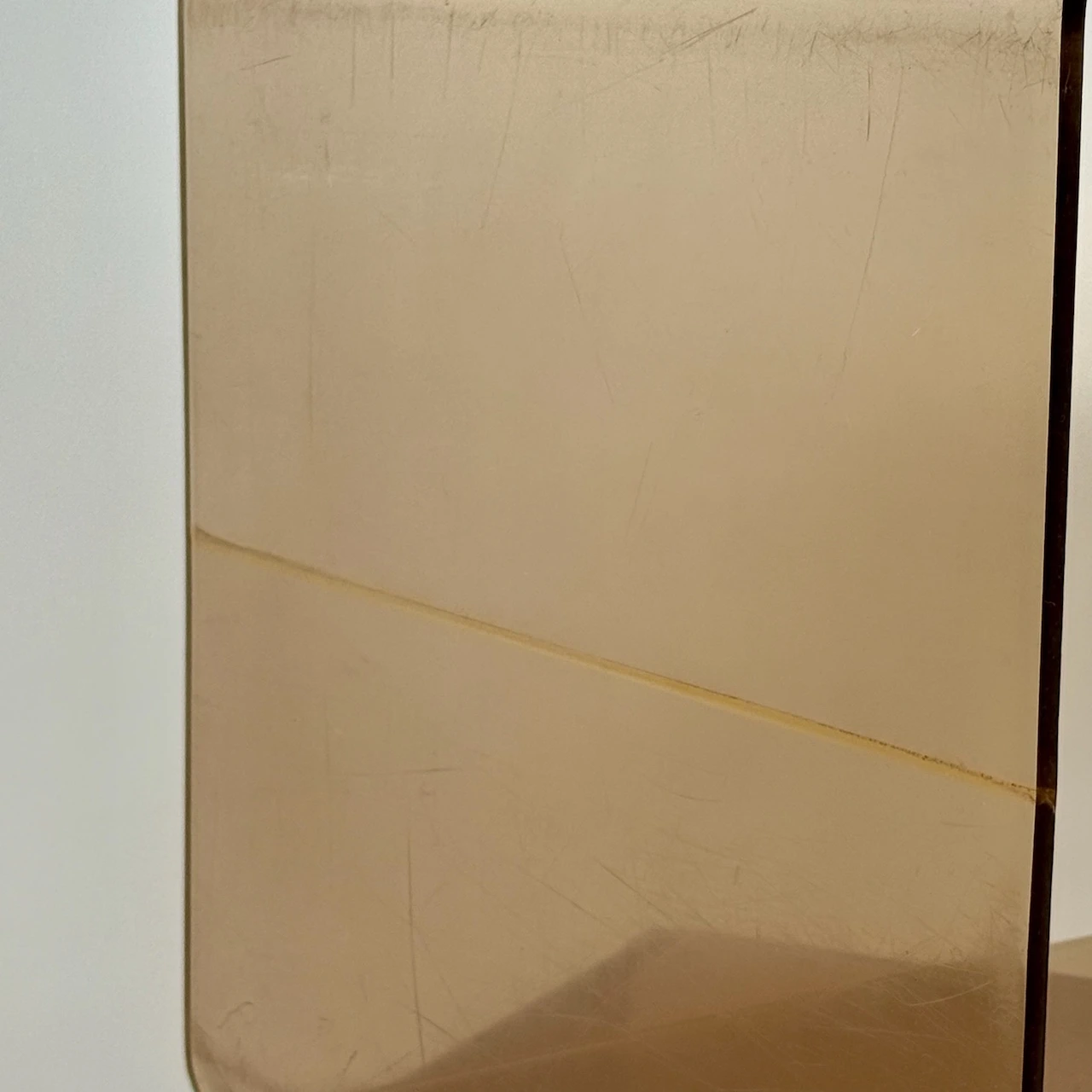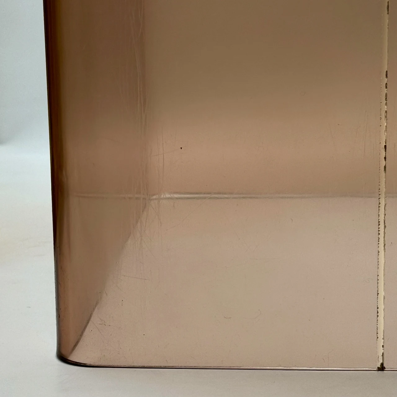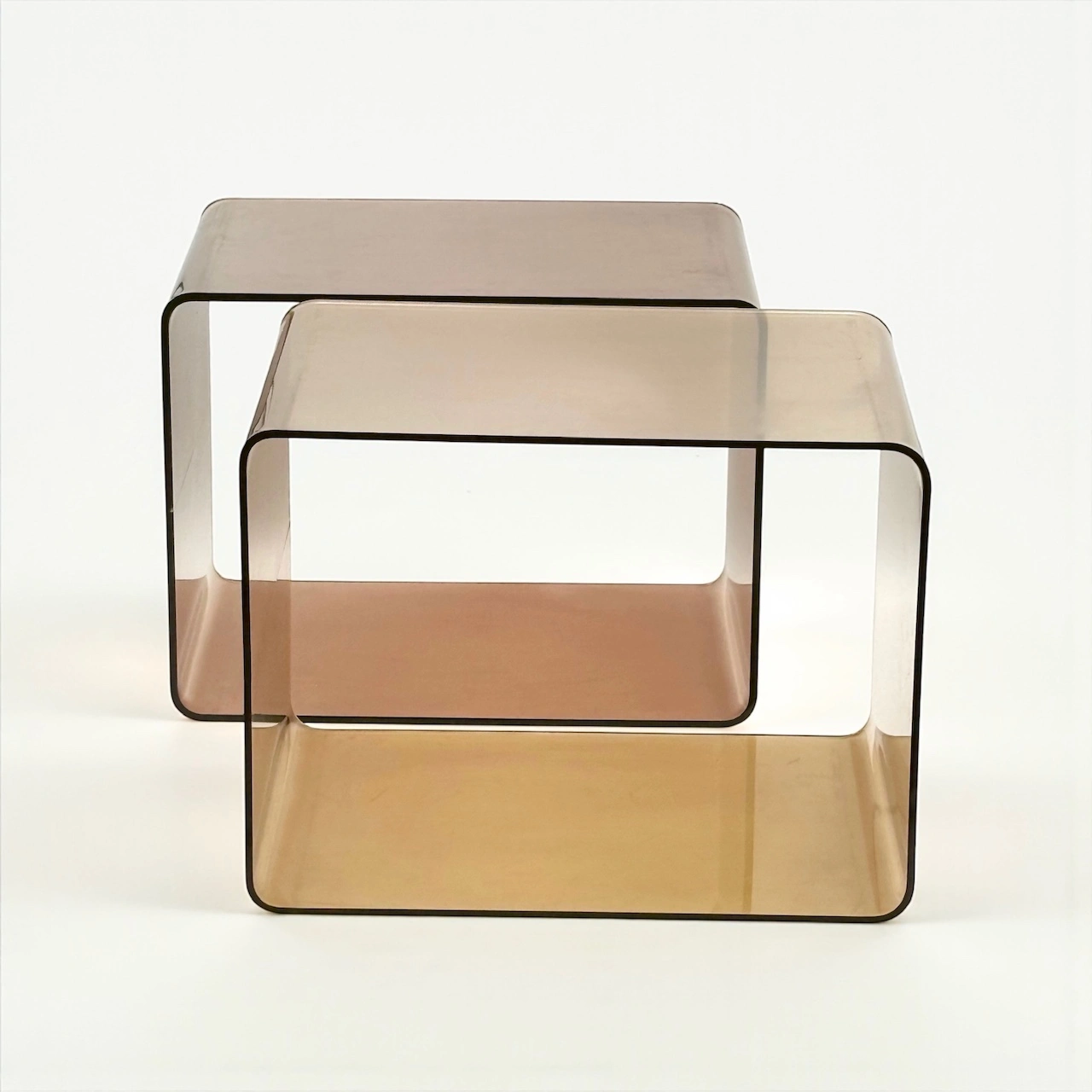 A rare pair of authentic smoked plexiglass stands from France dating to the 1970s. Their translucent amber tone, rounded edges and clean geometry express the optimistic elegance of the Space Age period. The warm transparency gives them a sculptural quality that suits both modern and vintage interiors.