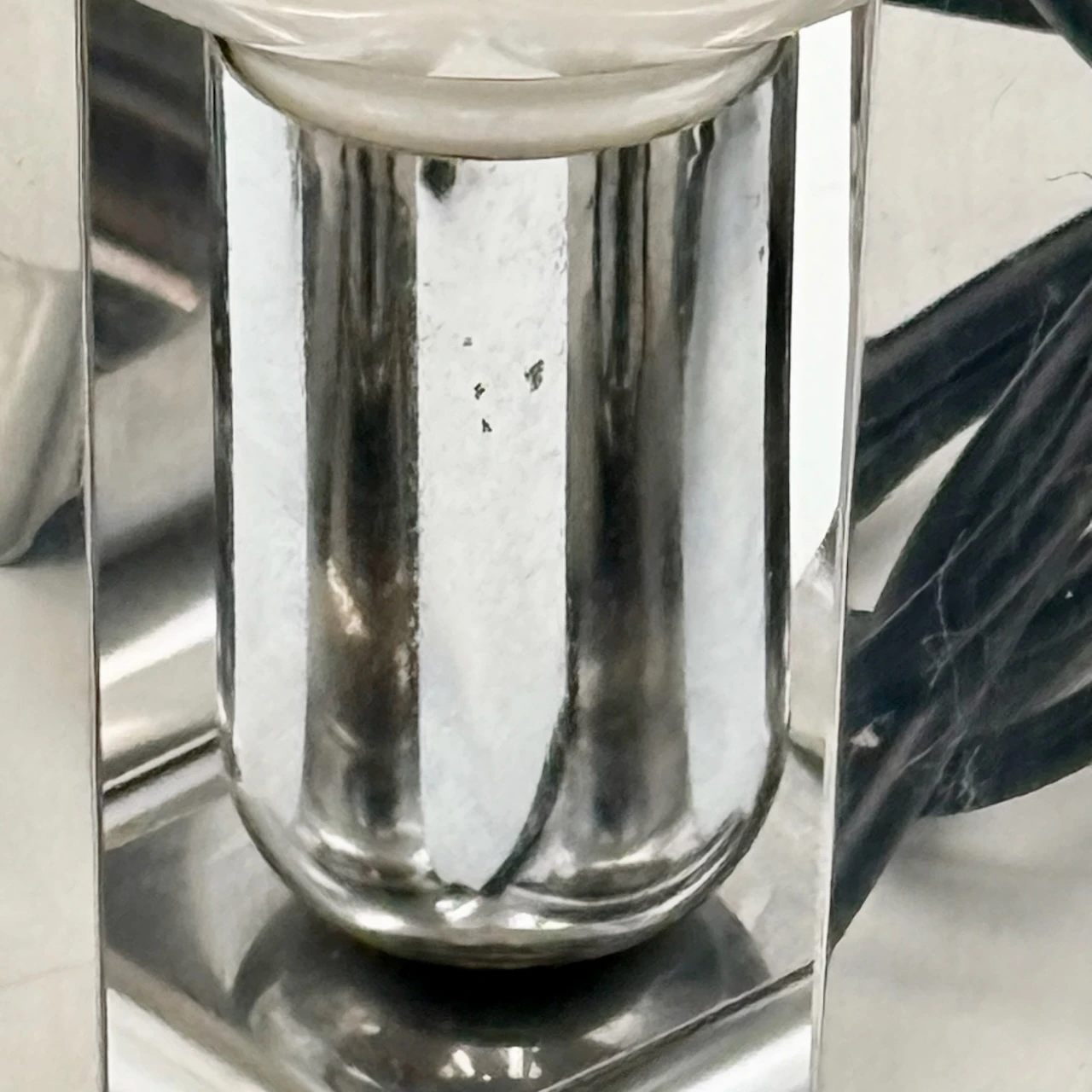 item. table lampsmodel. biliadesigner. claudio salocchimaker. lumenformperiod. 70scountry. Italymaterial. stainless steelcolor. chromed silverdimensions (cm). 12 x 12 x 25 (H) bulb included. height without bulb: 14 cm.condition. excellent condition – shiny and clean, with superficial scratches and very slight oxidation. minor flaking of the chrome on one of the two lamp holders.art. # 1719