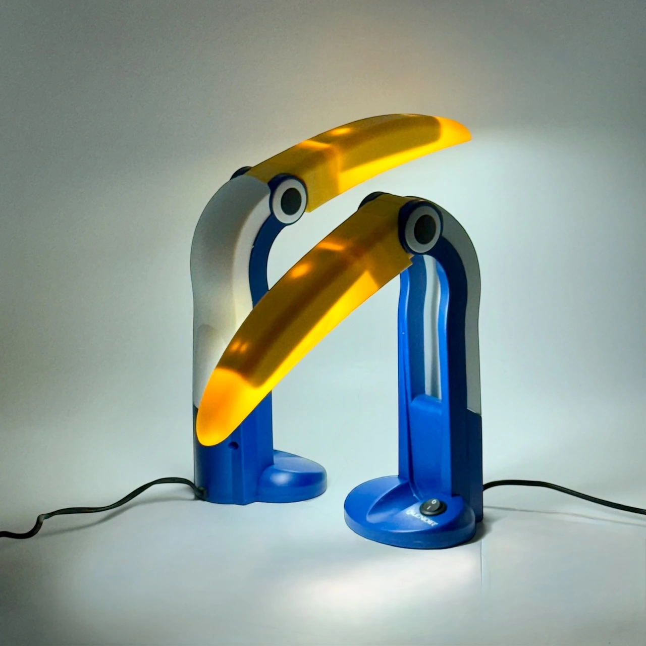 Add a cheerful touch to your home with this pair of Blue Toucan Lamps by Lenoir, model LE139 from the 1990s.