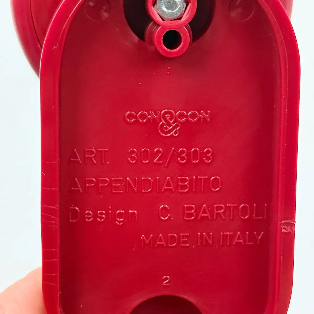 This set of Carlo Bartoli wall hooks is preserved as new old stock, never used, and comes complete with its original mounting screws — a rare detail that enhances both its authenticity and collectability.