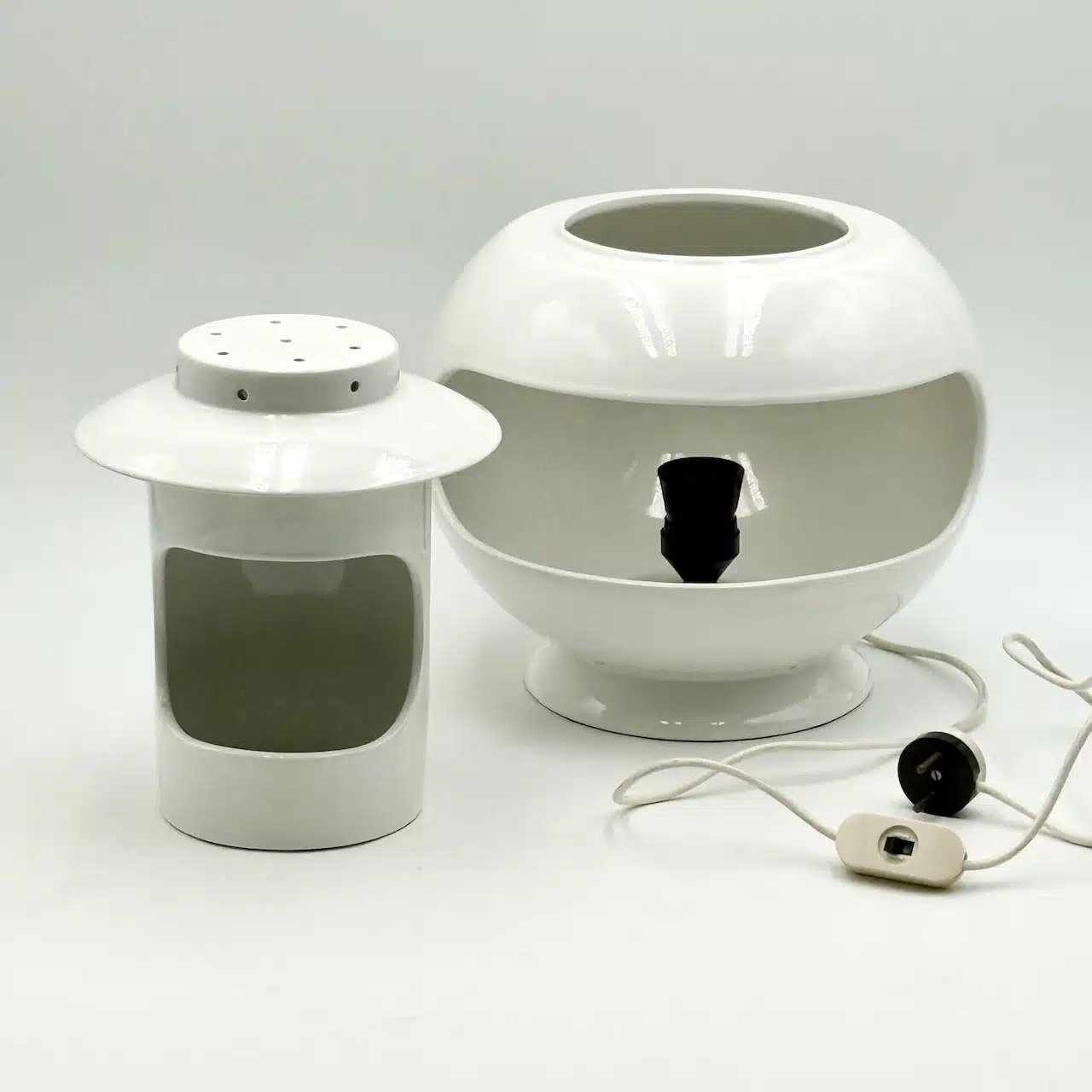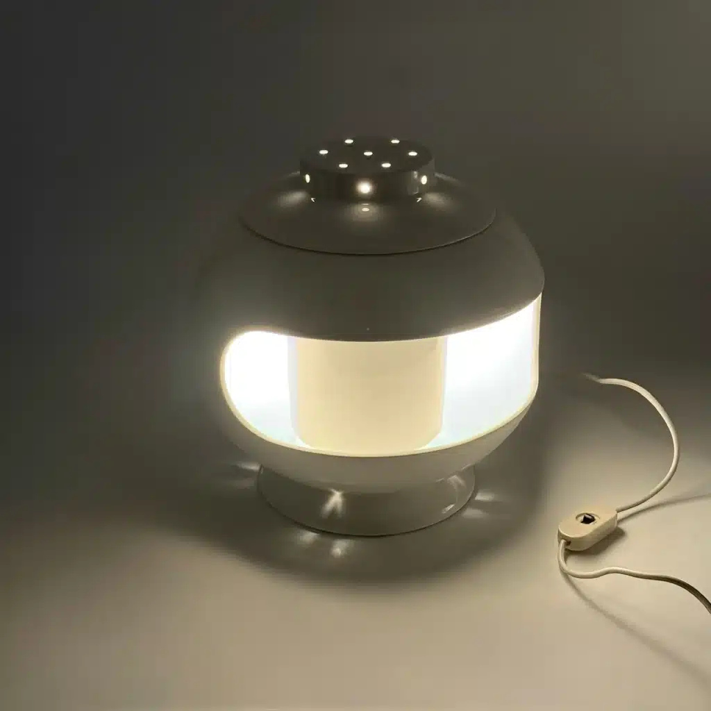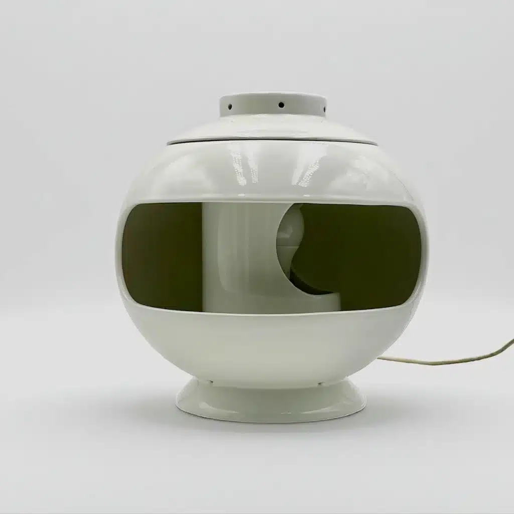 This is more than just a lamp—it’s a functional sculpture and a statement piece of vintage Italian Space Age design.In excellent vintage condition, it features its original wiring (E27 socket, inline switch) and is ready to illuminate your modernist or retro-futuristic interior.
