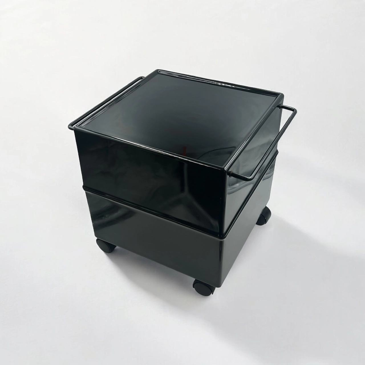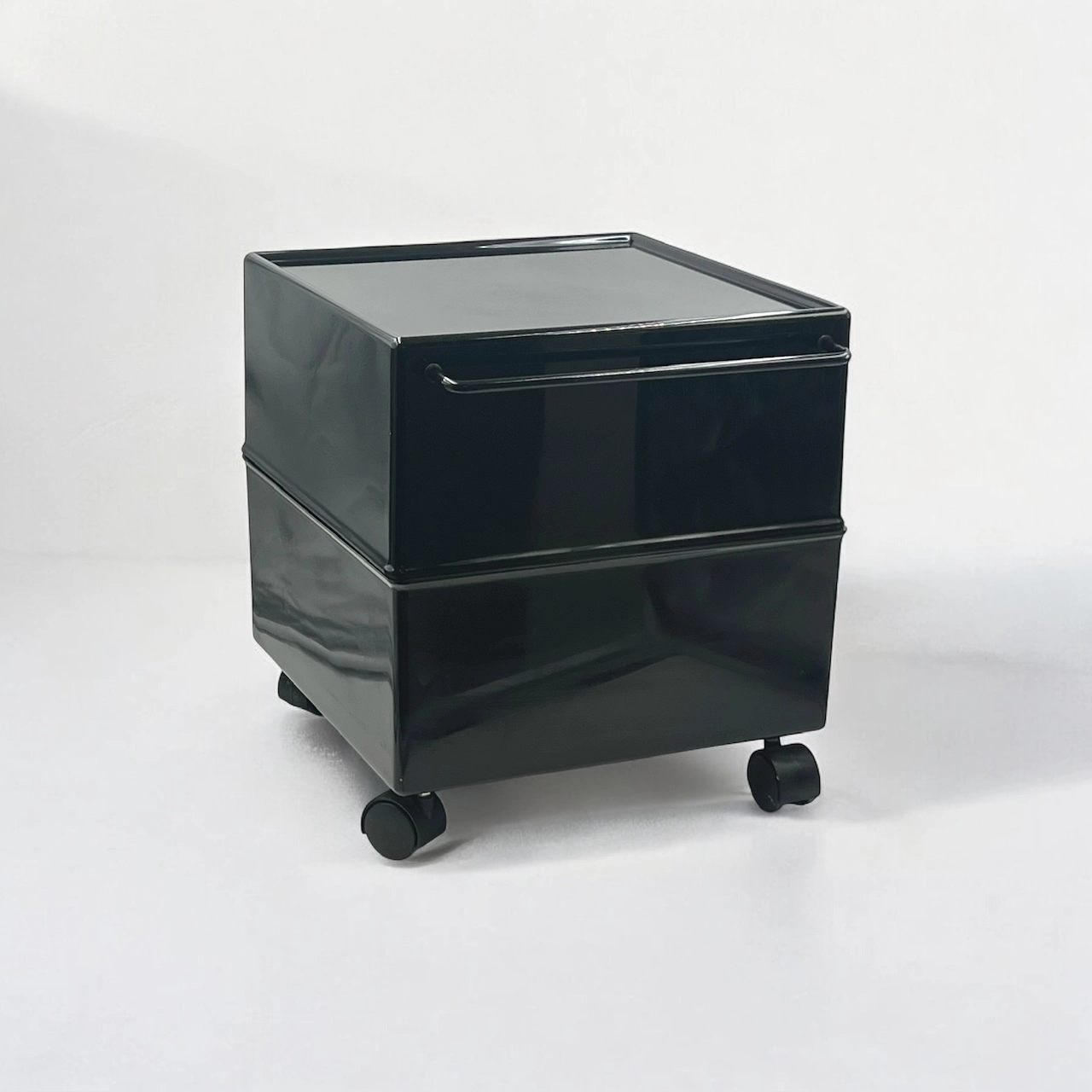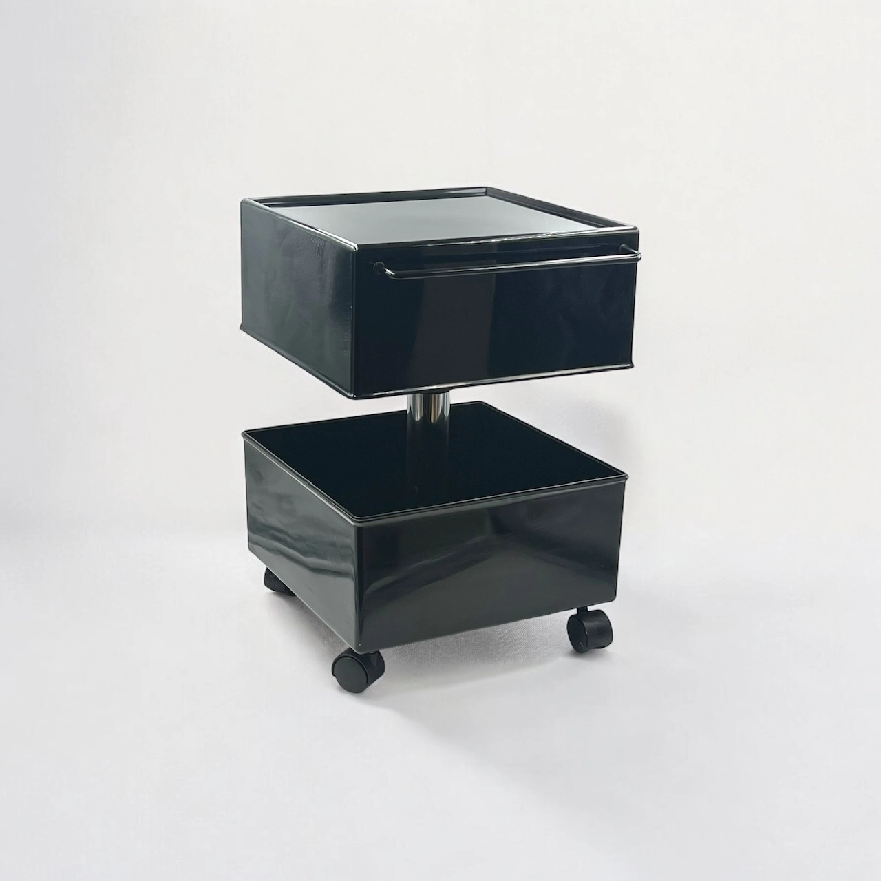Rare 70s CUBO Mobile Bar / Serving Trolley in glossy black by Studio Magis, a versatile piece of Space Age furniture design that blends style and functionality.