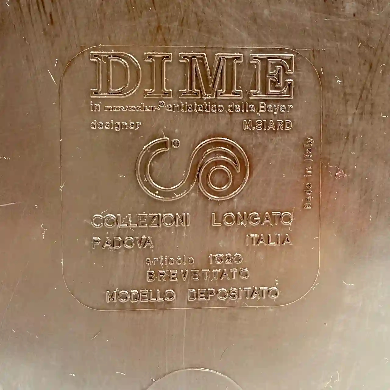 The underside of each piece bears the embossed marking “DIME – Collezioni Longato – Made in Italy – modello depositato”, confirming the authenticity of the production.