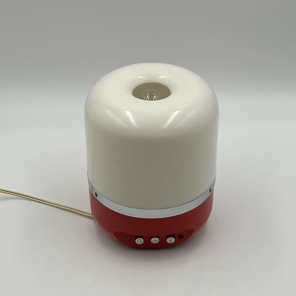 item. desk lamp – radiodesigner. Adriano Rampoldimaker. Europhonperiod. 1970scountry. Italymaterial. ABS, PMMAcolor. red, beigedimensions (cm). 16 x 16 x 21 (H)condition. excellent aesthetic conditions. AM radio and lamp are perfectly working. EU standard plug – works outside EU with a simple adapter.art. no. 1084
