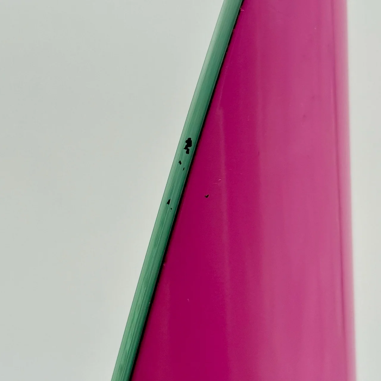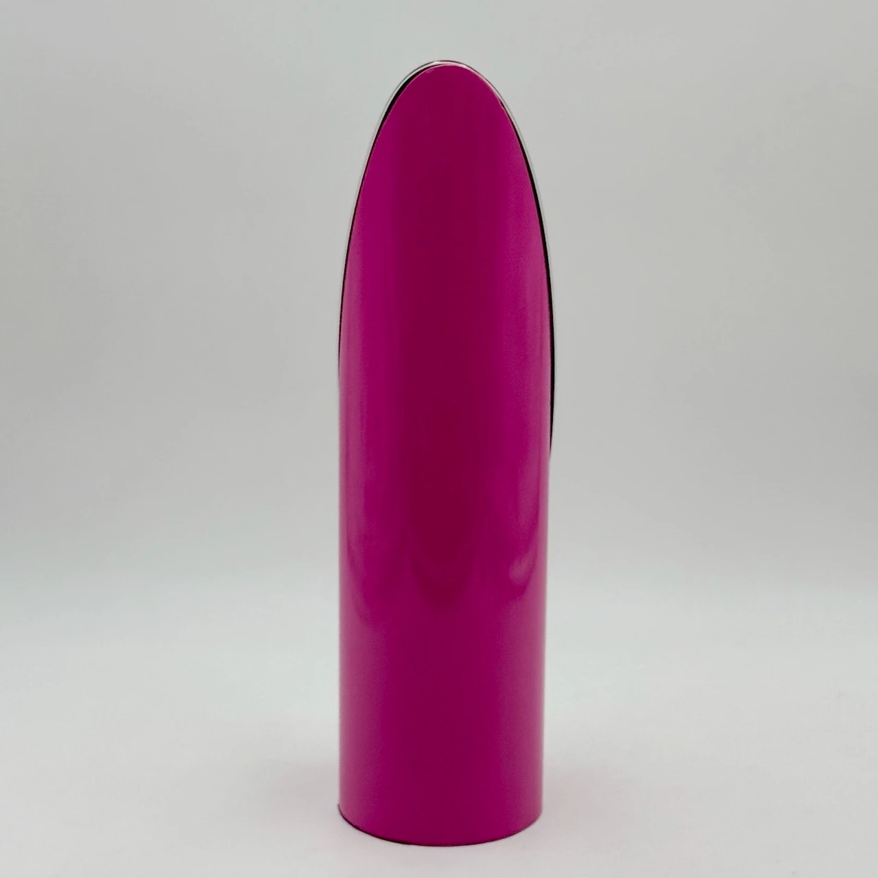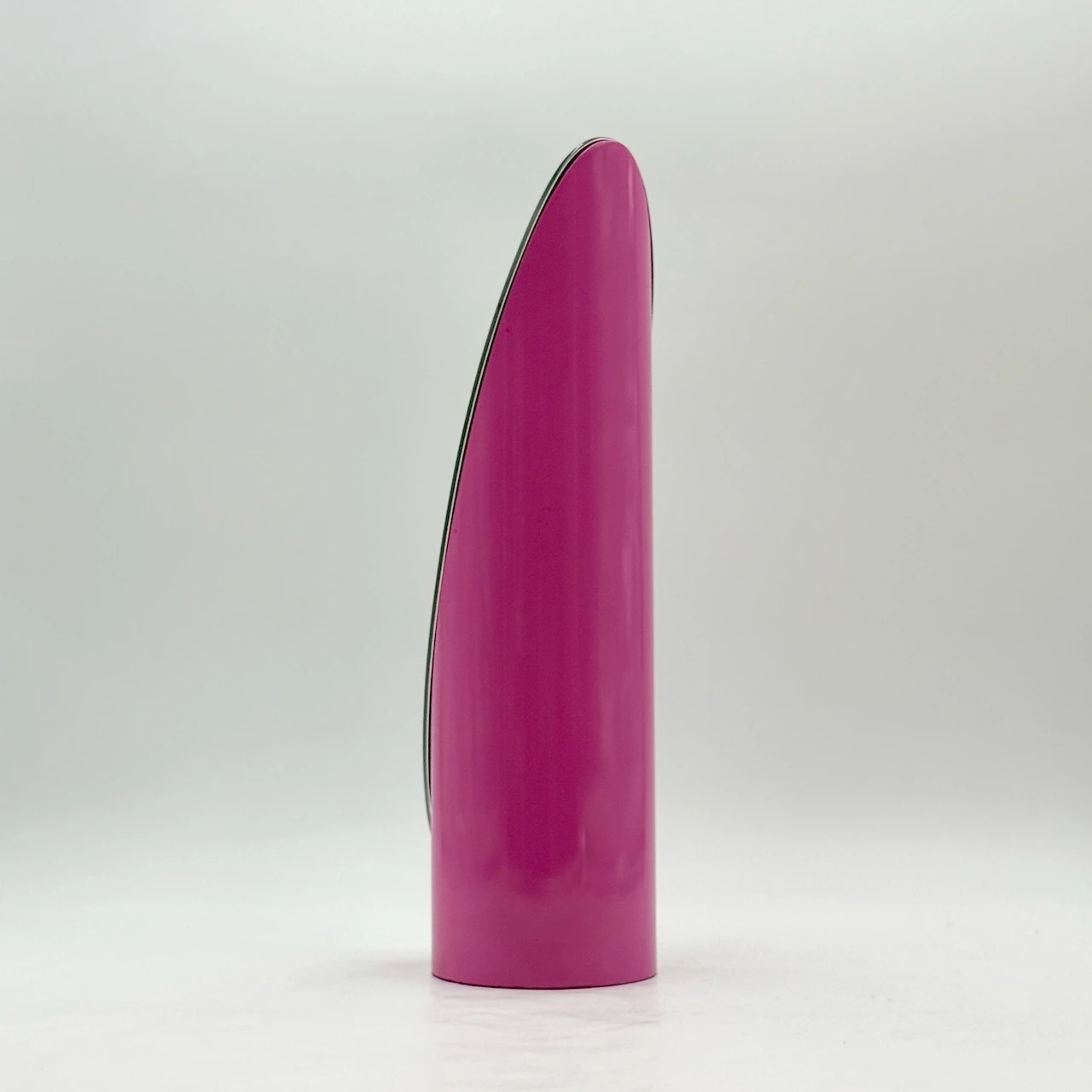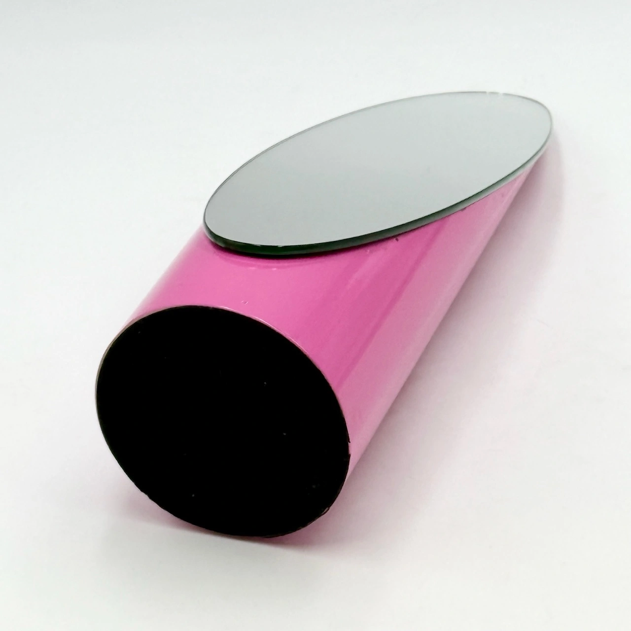 This striking 1970s tabletop mirror captures the playful radicalism of Italian Pop design in a clean, sculptural silhouette. Shaped like a stylized lipstick, it features a vivid fuchsia pink base with a cool magenta undertone, paired with a tilted oval mirror that feels both functional and expressive.