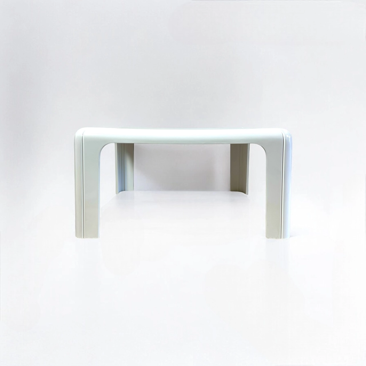 Award-winning 1970s Gae Aulenti Table 4894 for Kartell – a minimalist icon in white polyurethane with timeless Italian design elegance.