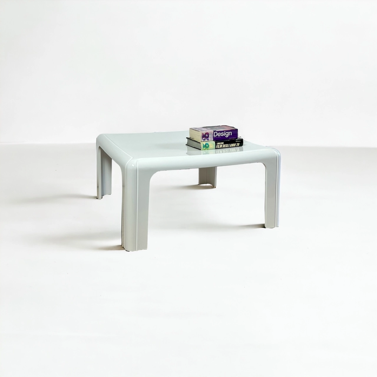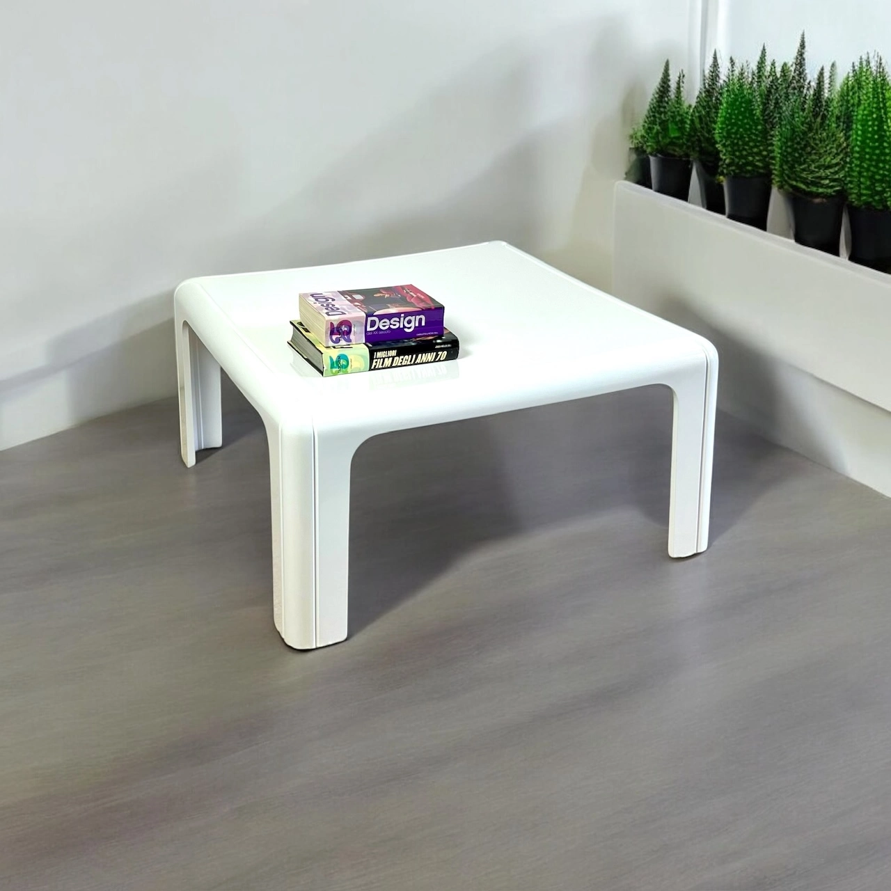 Constructed from molded white polyurethane, the table measures 75x75x38h, a versatile size that fits seamlessly into a variety of interiors. Its sleek, square form and pure white finish create an impactful, yet understated visual appeal. The minimalist approach highlights Aulentis pioneering vision, capturing the essence of Italian design’s progressive spirit in the 1970s.