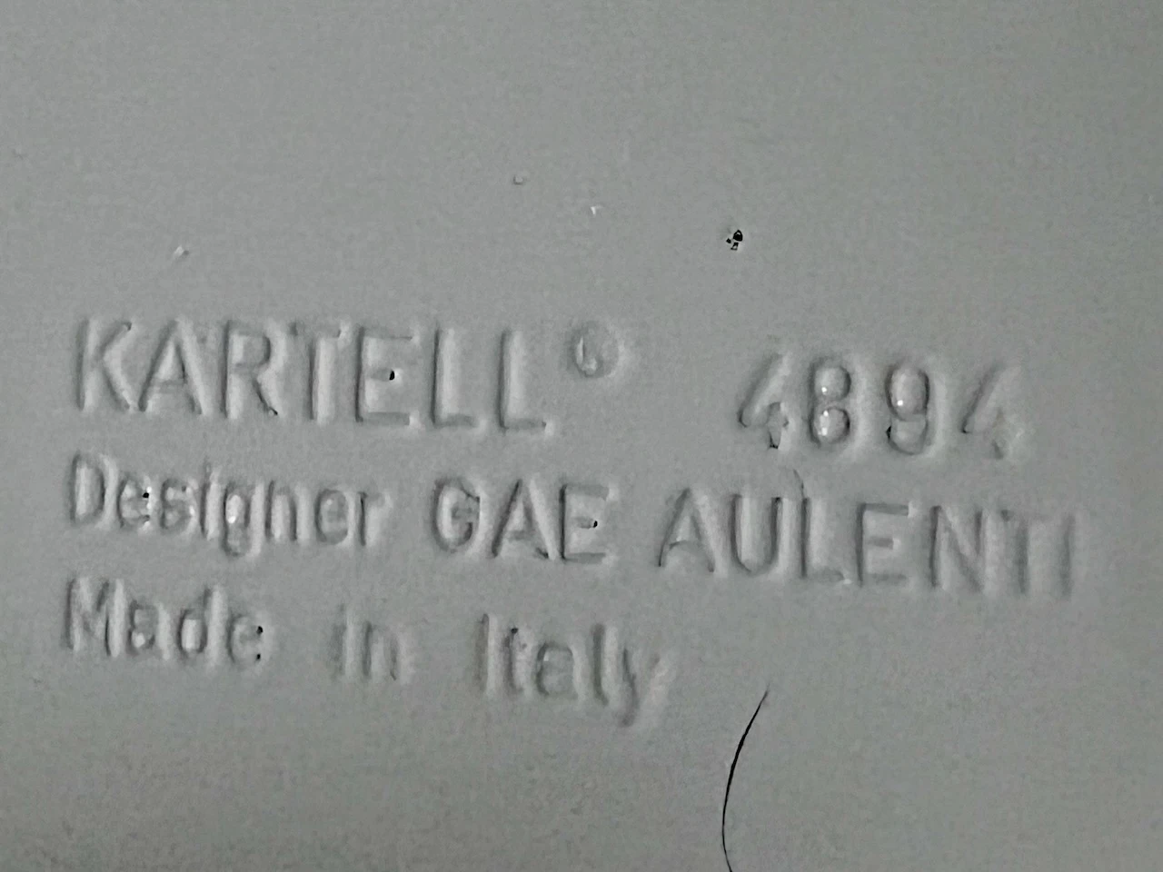 item. tablemodel. 4894designer. gae aulentimaker. kartellperiod. 70scountry. Italymaterial. molded polyurethanecolor. whitedimensions (cm). 75 x 75 x 38 (H)condition. excellent condition. the table has been meticulously restored to its original brightness. minor imperfections, visible solely under detailed inspection.