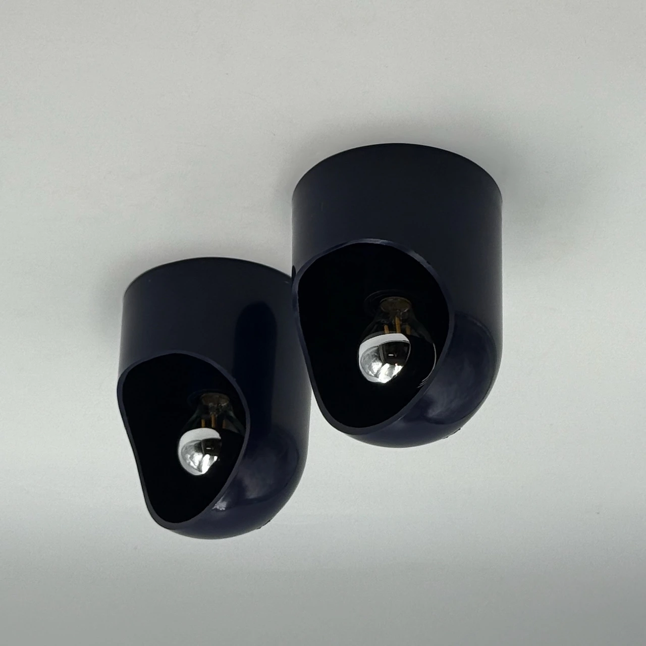 The lamps can be used on a wall or ceiling. They are small, functional, and elegant. Their clean lines and deep color make them easy to place in many interiors — from hallways to bedrooms or studio spaces.Both lamps are in excellent vintage condition with light traces of age. The box visible in some photos was used for documentation only and is not available.
