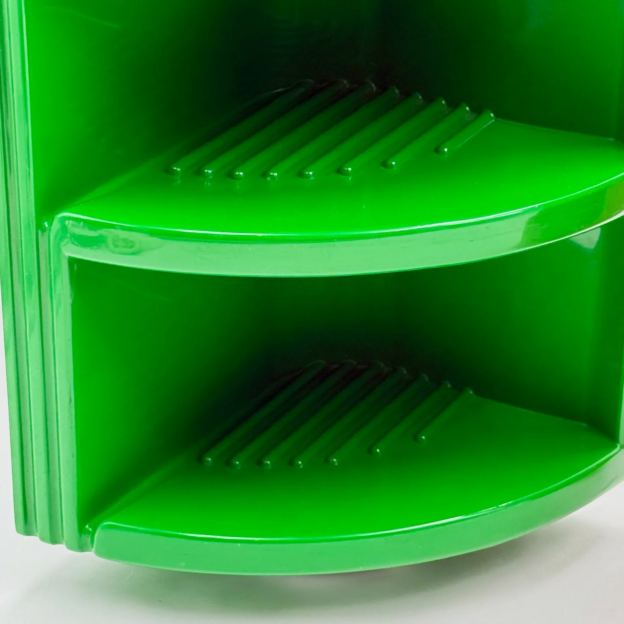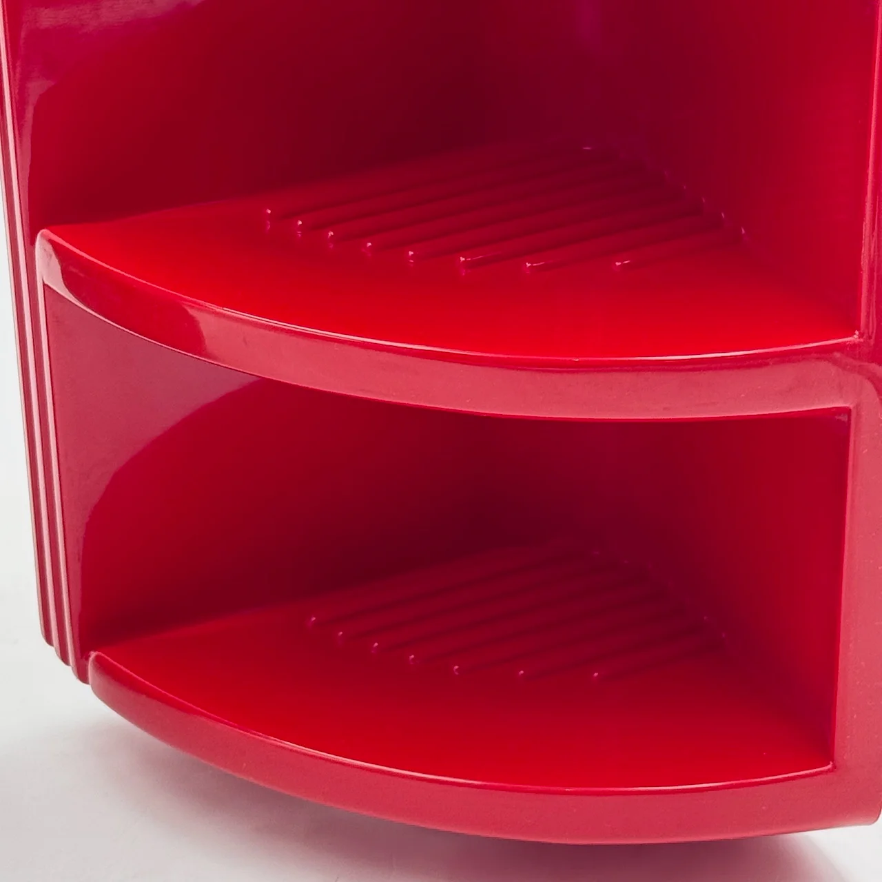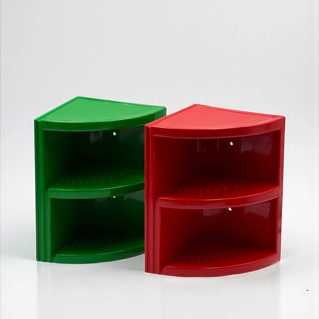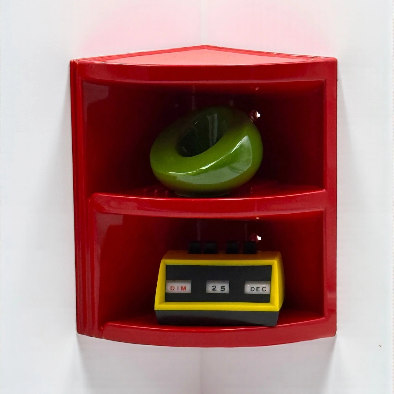 Rendered in vivid red and green plastic, the pair showcases Gedy’s research into colour, form, and durability at the time. Their glossy finish and sculptural geometry bring a lively, graphic accent to any interior, whether used in a bathroom, kitchen, studio, or as a decorative modular element in modern spaces.