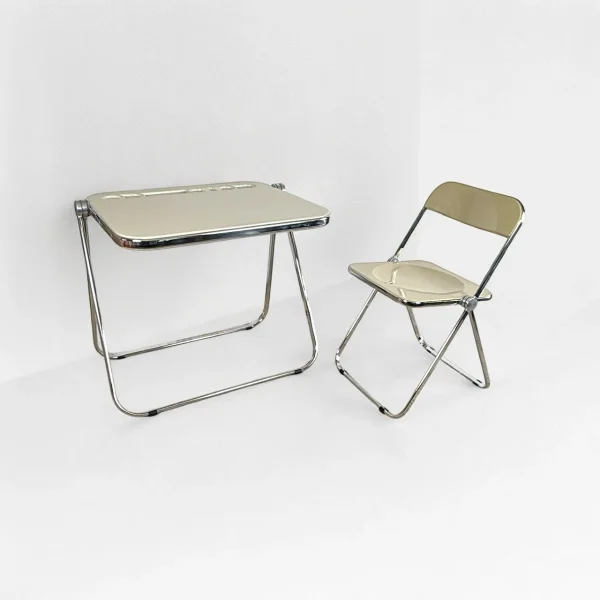 Iconic Platone desk and Plia chair by Giancarlo Piretti. A rare, foldable Mid Century set designed for Anonima Castelli in the 1970s – earning a place in MoMA’s permanent collection.