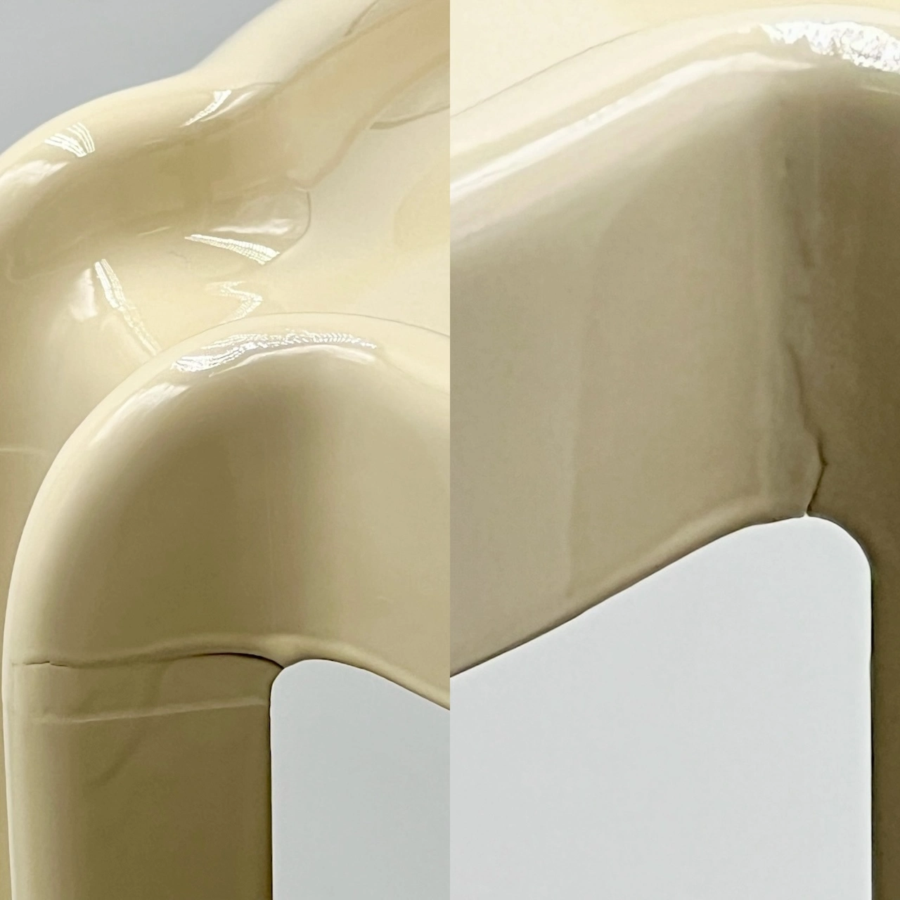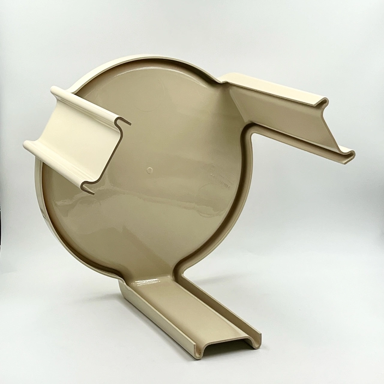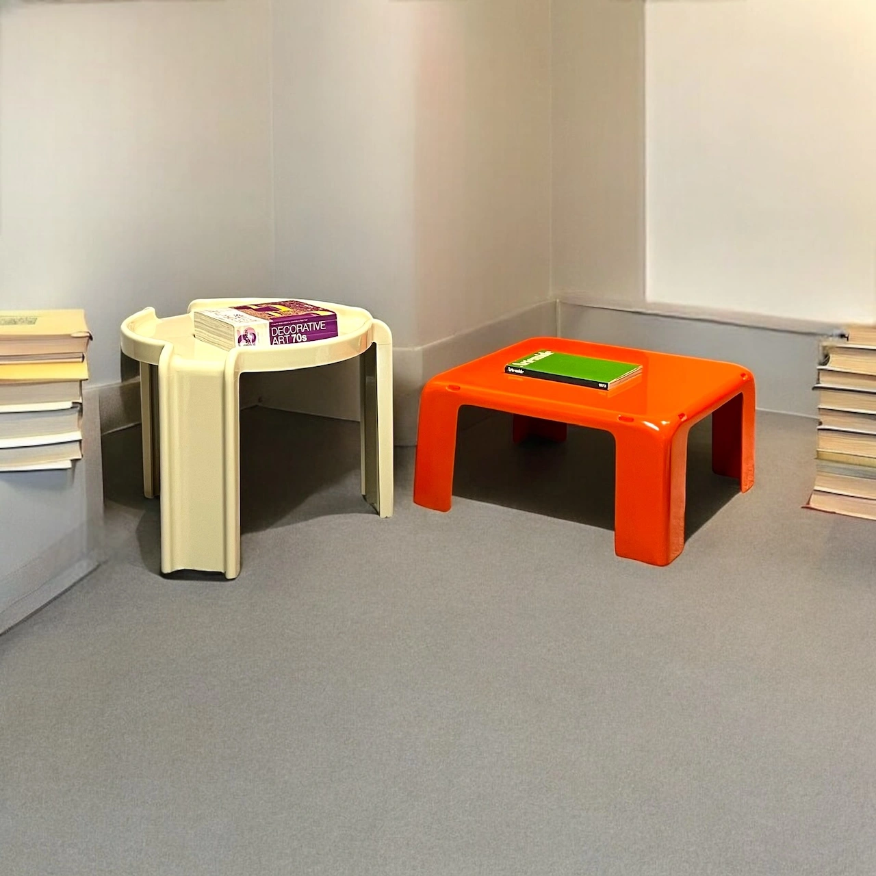 item. coffee tablemodel. 4905/6/7designer. Giotto Stoppinomaker. Kartellperiod. 70scountry. Italymaterial. moulded plasticcolor. creamdimensions (cm). 45 x 45 x 37 (H)condition. excellent vintage condition, with the color professionally restored to its original glossy shine. small signs of wear, including minor smudges and a very faint hairline crack (see pictures).