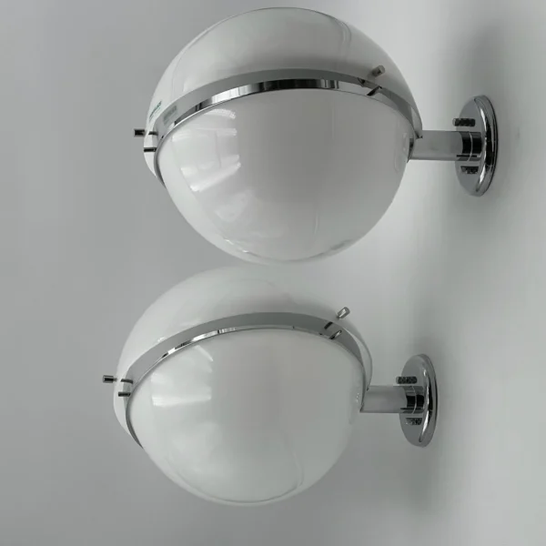 item. wall lampsmaker. Harveiluce iGuzziniperiod. 1960/1970scountry. Italymaterial. methacrylate, metalcolor. white, chrome silverdimensions (cm). 26 x 24 x 34 (depth)condition. excellent conditions, never used with original box.