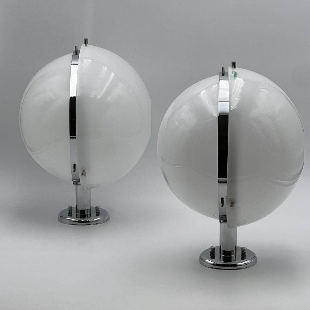 The model 5005 is a brilliant example of Harveiluce / iGuzzini design and innovative manufacturing tecniques. Two translucent half-globes interconnected with a shining chrome metal bar define the design concept of this magnificent lamp.