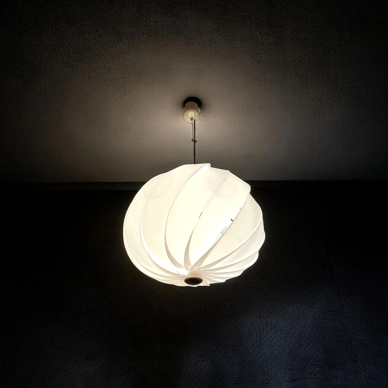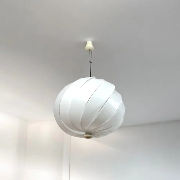 item. hanging lampdesigner. emanuele ponziomaker. Harvey Guzzinimodel. alicanteperiod. 1960s/70scountry. Italymaterial. acrylic, metalcolor. white, beigedimensions (cm). 60 x 60 x 50. total length including cable: 100 cm.condition. excellent vintage conditions, with minimal traces of time.