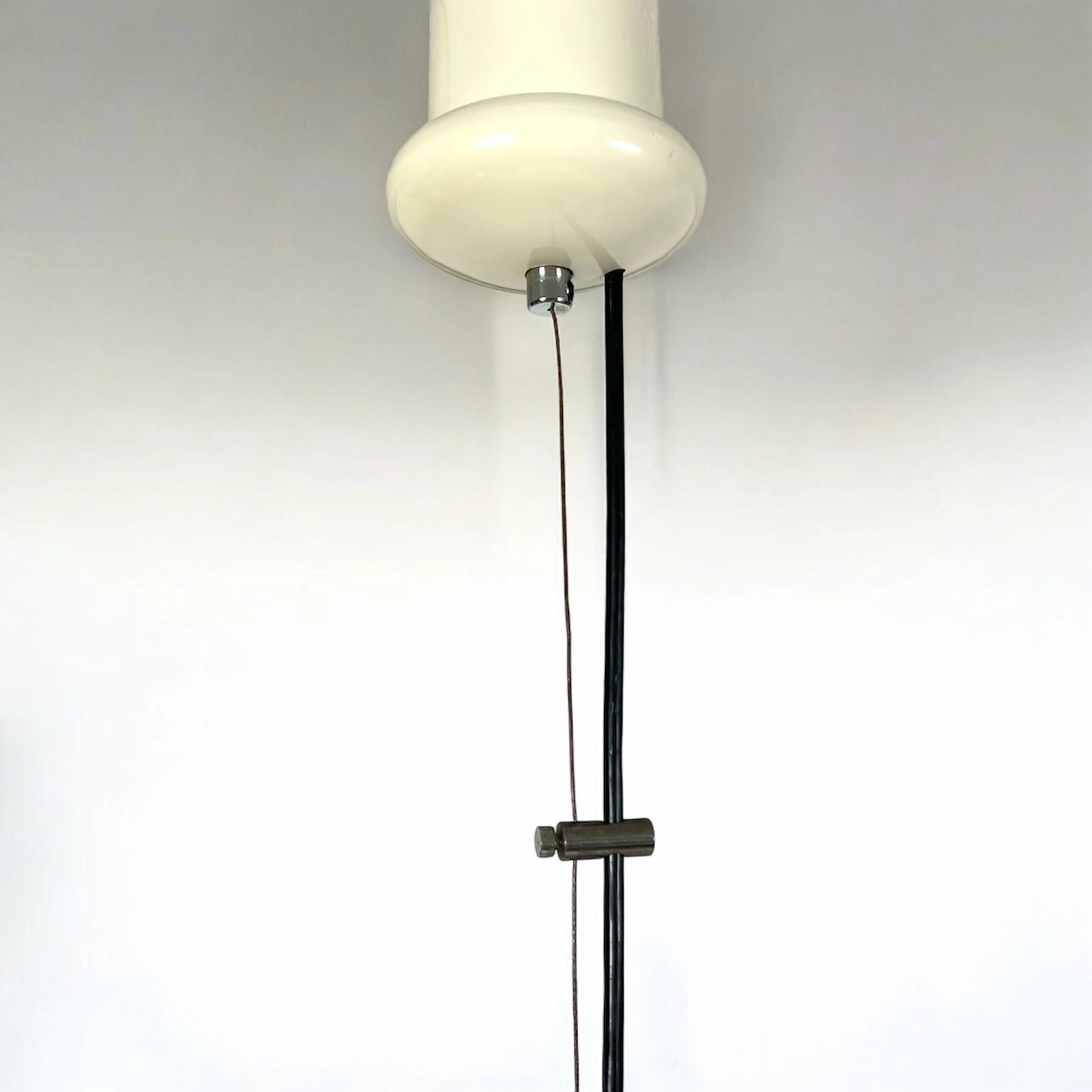 As with many Harvey Guzzini creations, the Alicante pendant lamp is a true icon of the golden age of Italian design. Its bold, futuristic form perfectly captures the innovative spirit of the Space Age era, making it a standout piece for collectors or anyone looking to add a touch of retro sophistication to their home. In excellent working condition, this lamp also features its original iGuzzini and art. 7005 labels, adding to its authenticity and value.
