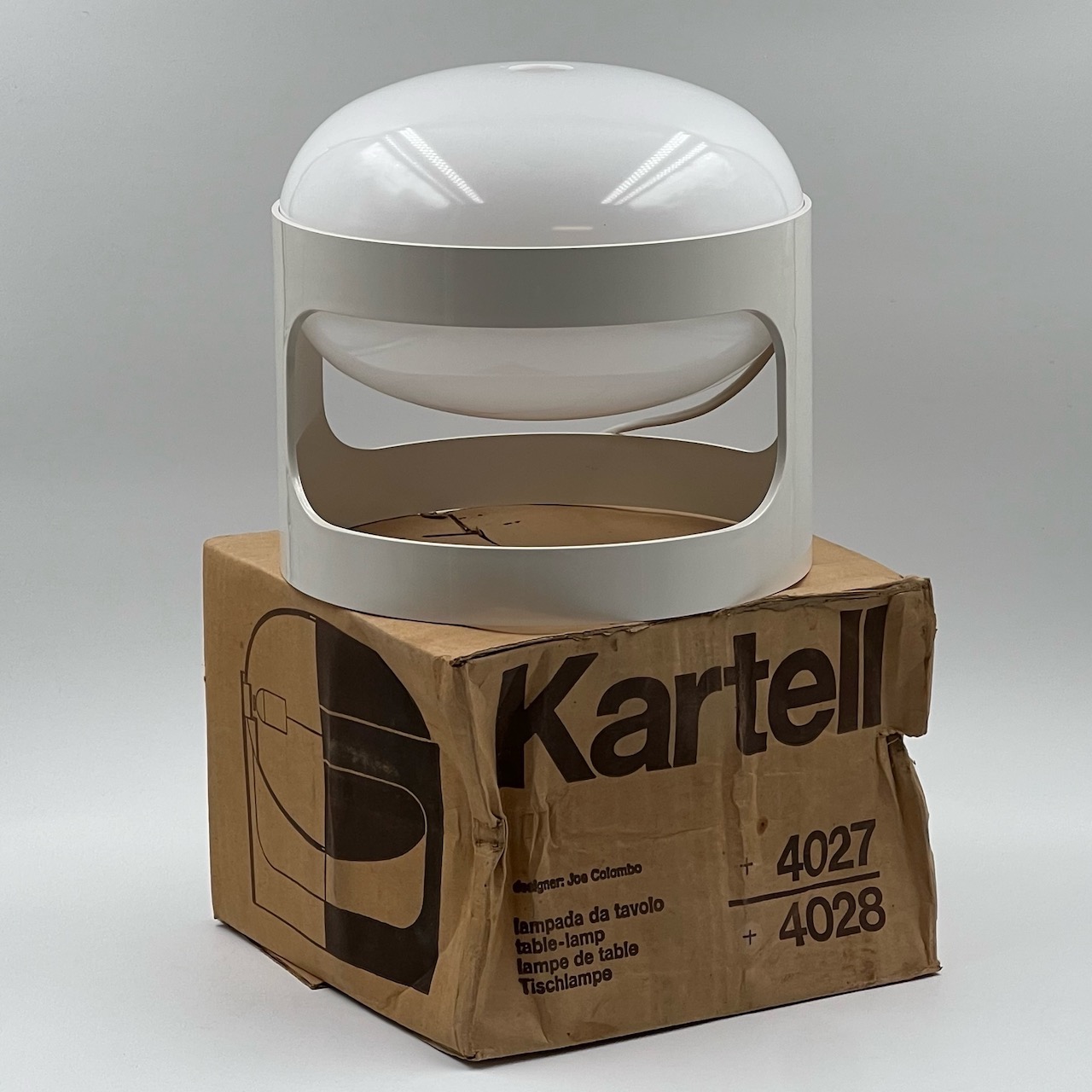 item. table lampdesigner. Joe Colombomaker. Kartellmodel. KD27period. 1960scountry. Italymaterial. plastic, methacrylate color. whitedimensions (cm). 25 x 25 x 24 Hcondition. excellent conditions. with original box.art. no. 1242