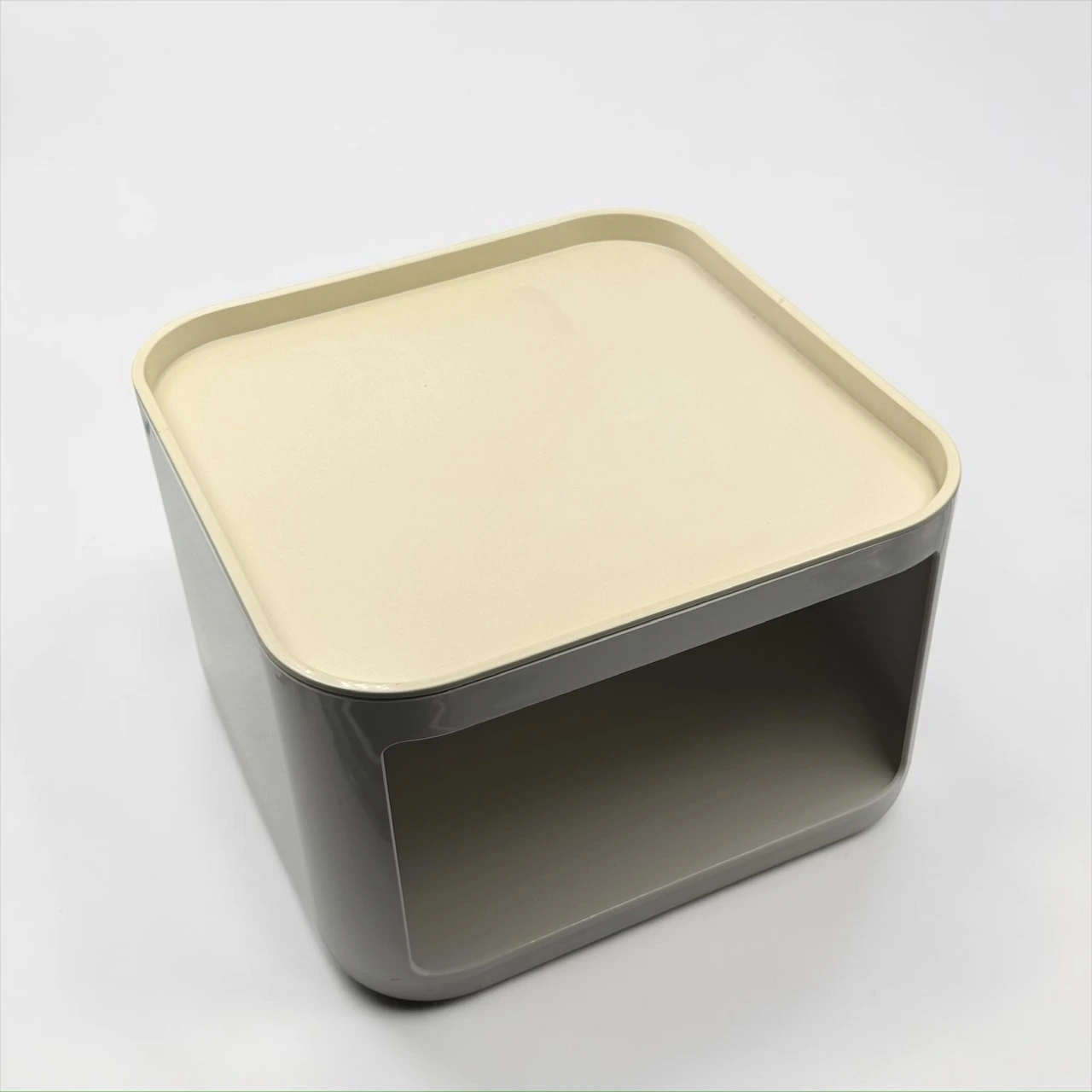 The square version enhances this effect further, offering a more stable and grounded presence compared to the cylindrical variants. Designed for versatility, it can function as a side table, bedside unit, or compact storage system.