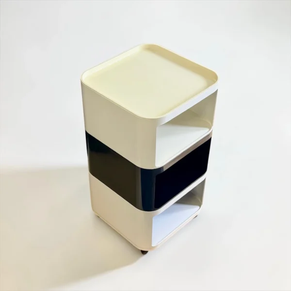 This kartell componibili 4970 set combines white and black modules, creating a visual contrast that transforms a functional object into a compositional element. Unlike uniform configurations, the alternation of tones introduces rhythm and structure, making the piece more architectural and visually defined within a space.