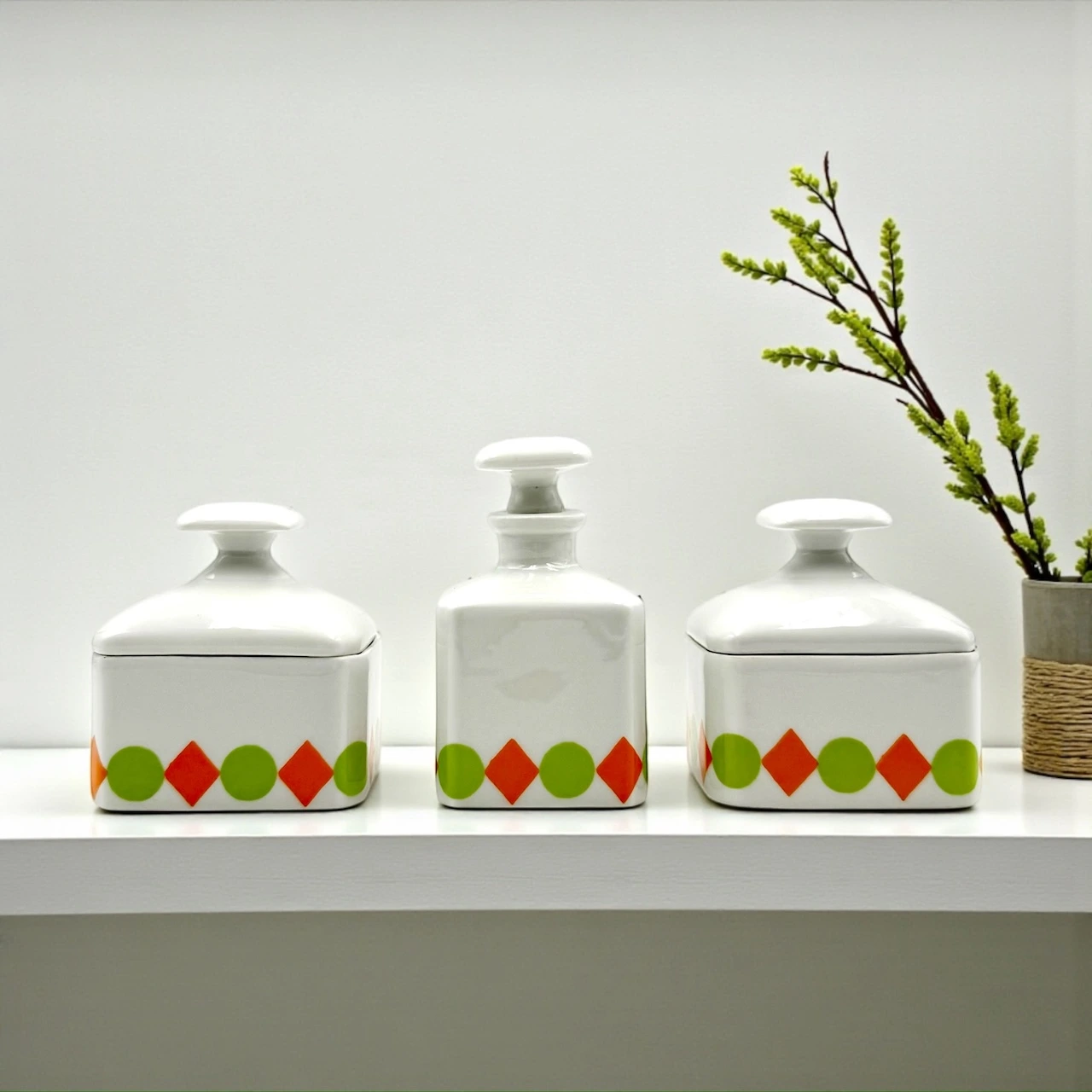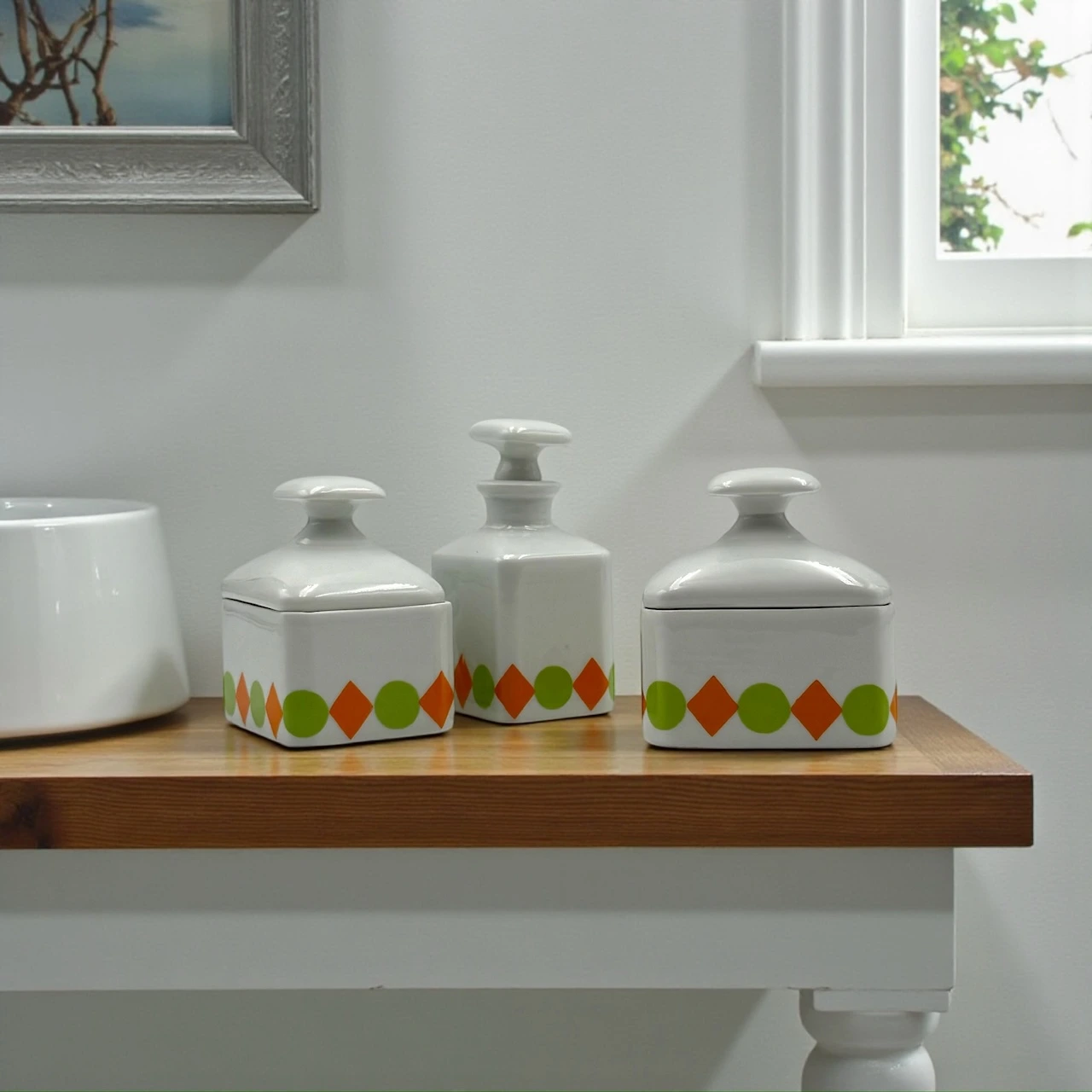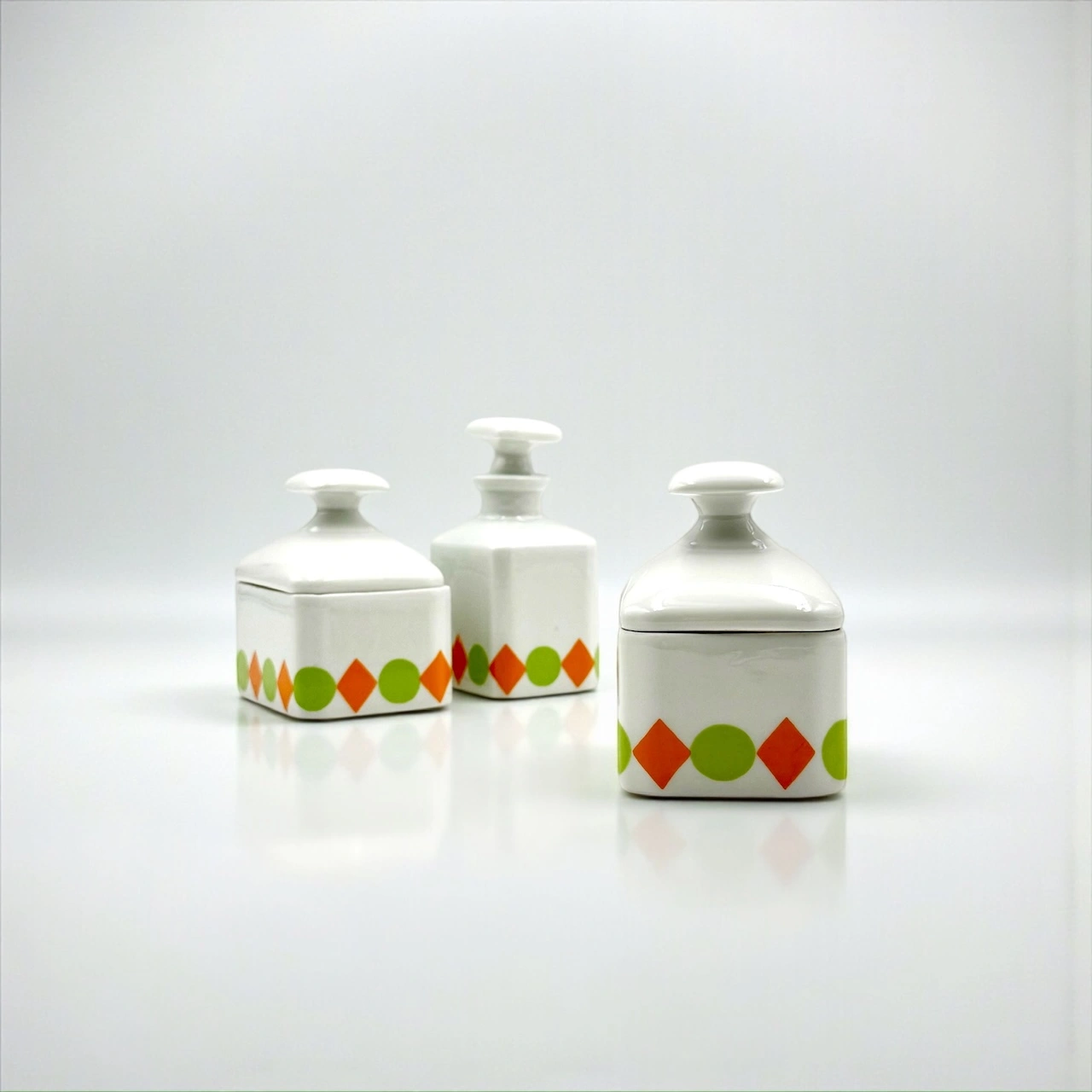 This Limoges toiletry set is a genuine document of French domestic design between tradition and modernity. It pairs naturally with both classic and contemporary interiors and appeals to collectors interested in early twentieth-century decorative objects, Limoges porcelain, and Art Deco influenced design.