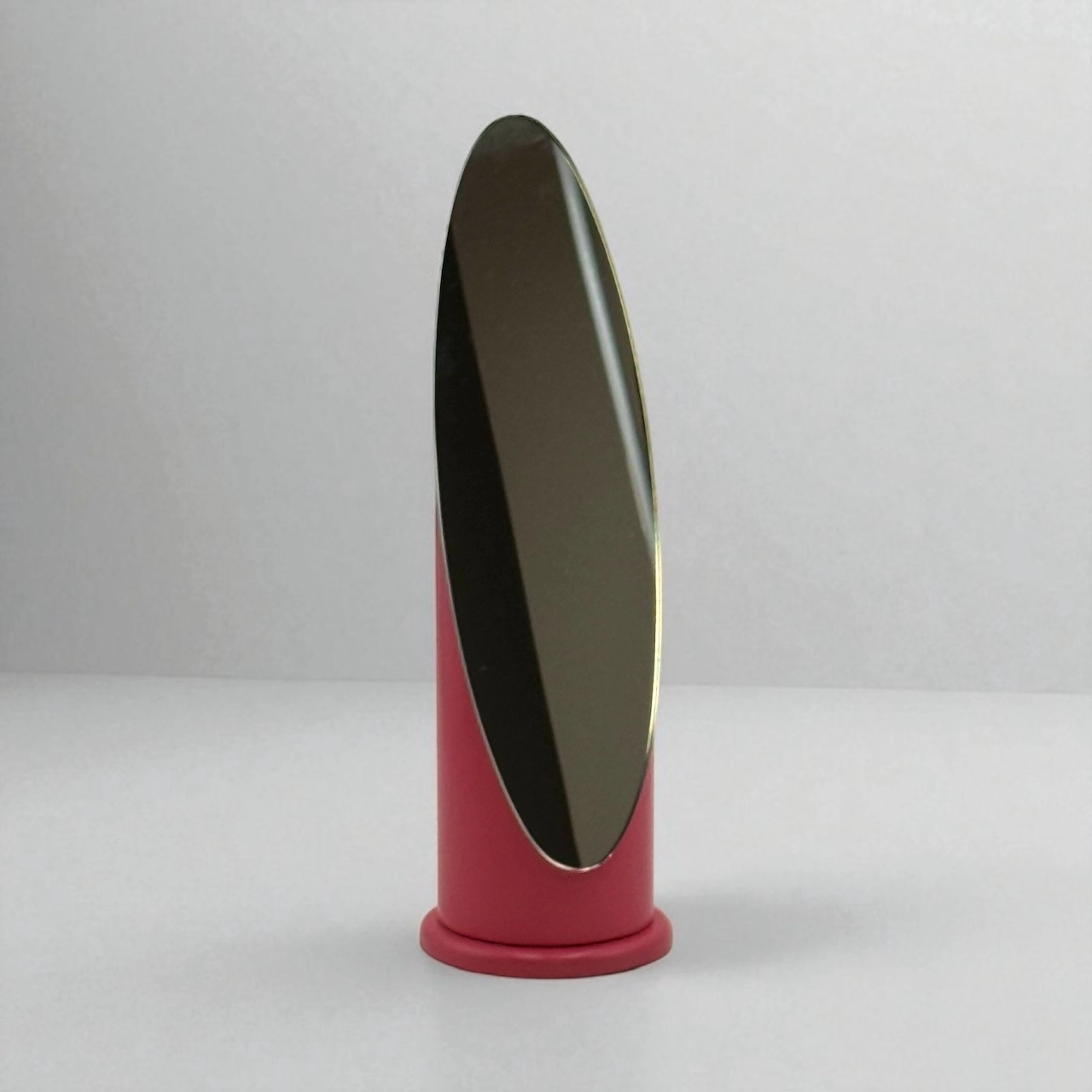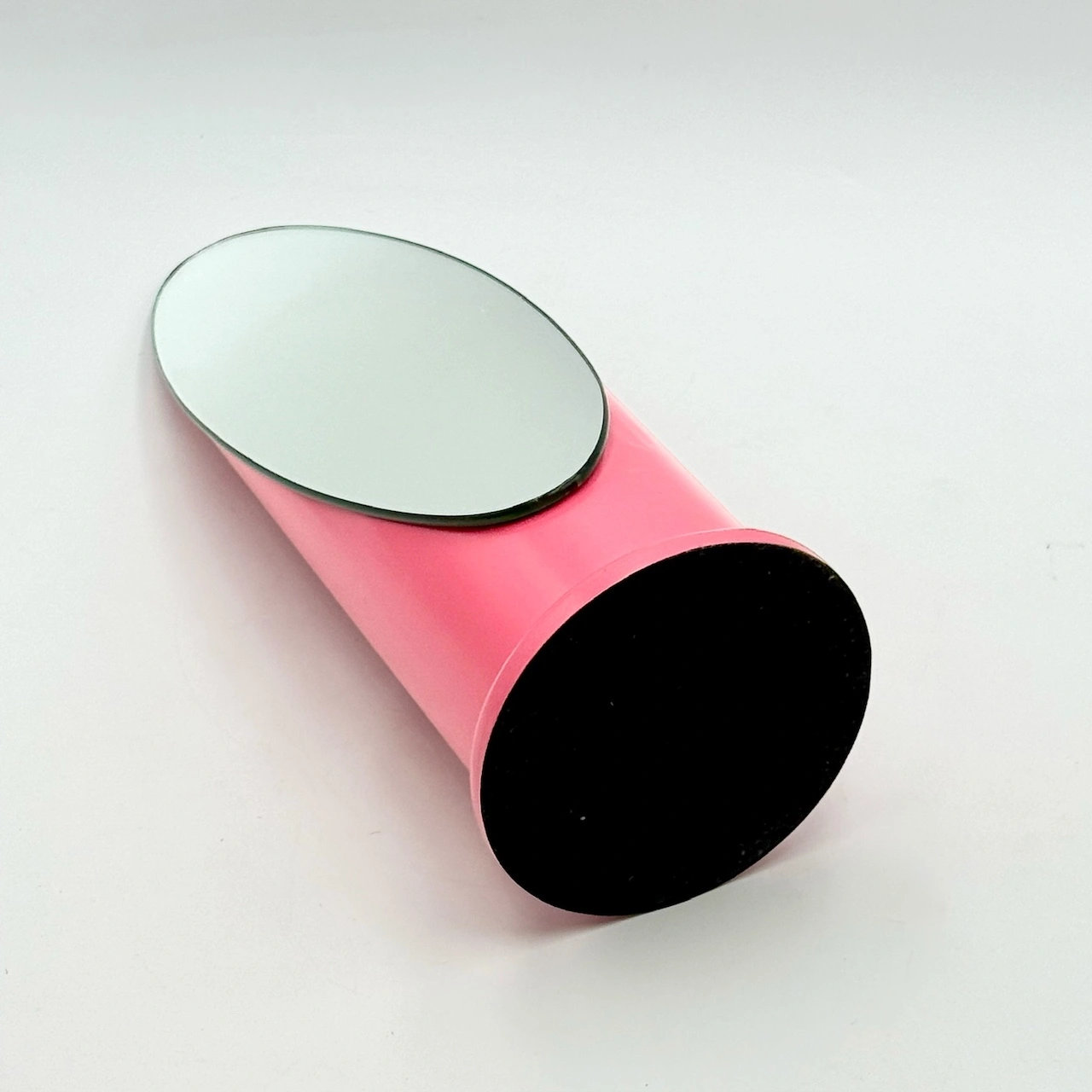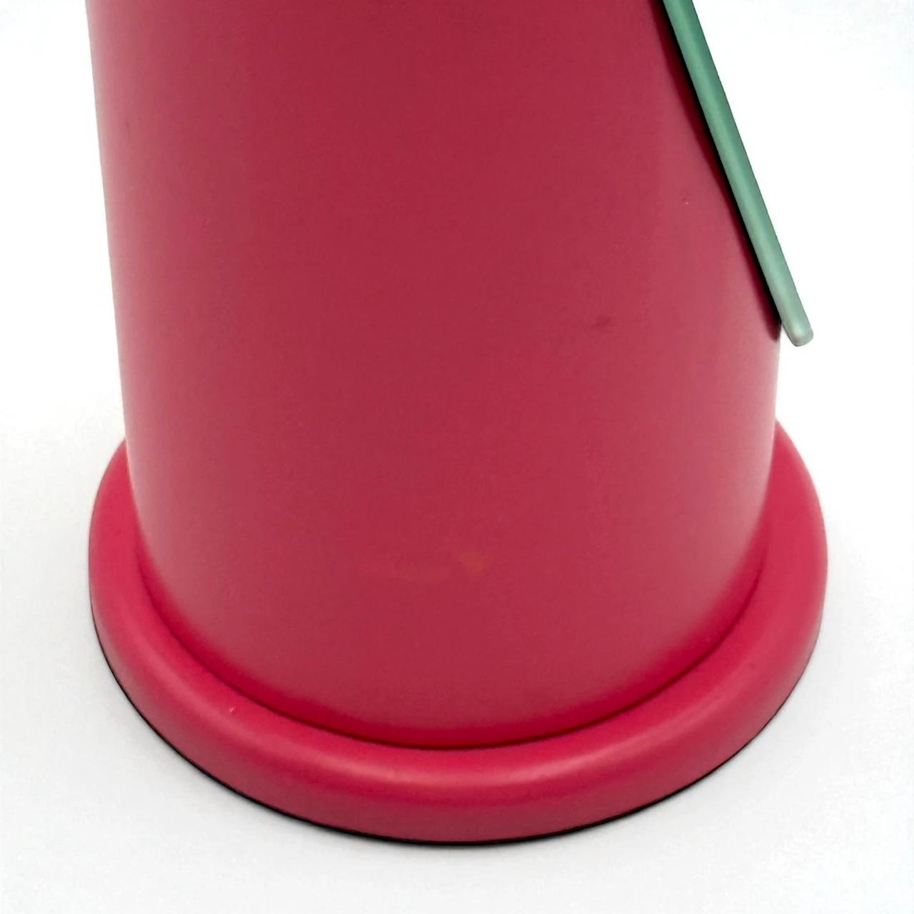 This striking vintage tabletop mirror is a rare expression of 1970s Italian Pop design. With its sculptural silhouette and vivid fuchsia color, it evokes the decade’s playful blend of function and form. The cylindrical base supports an elegant oval mirror tilted slightly forward, delivering both presence and usability.