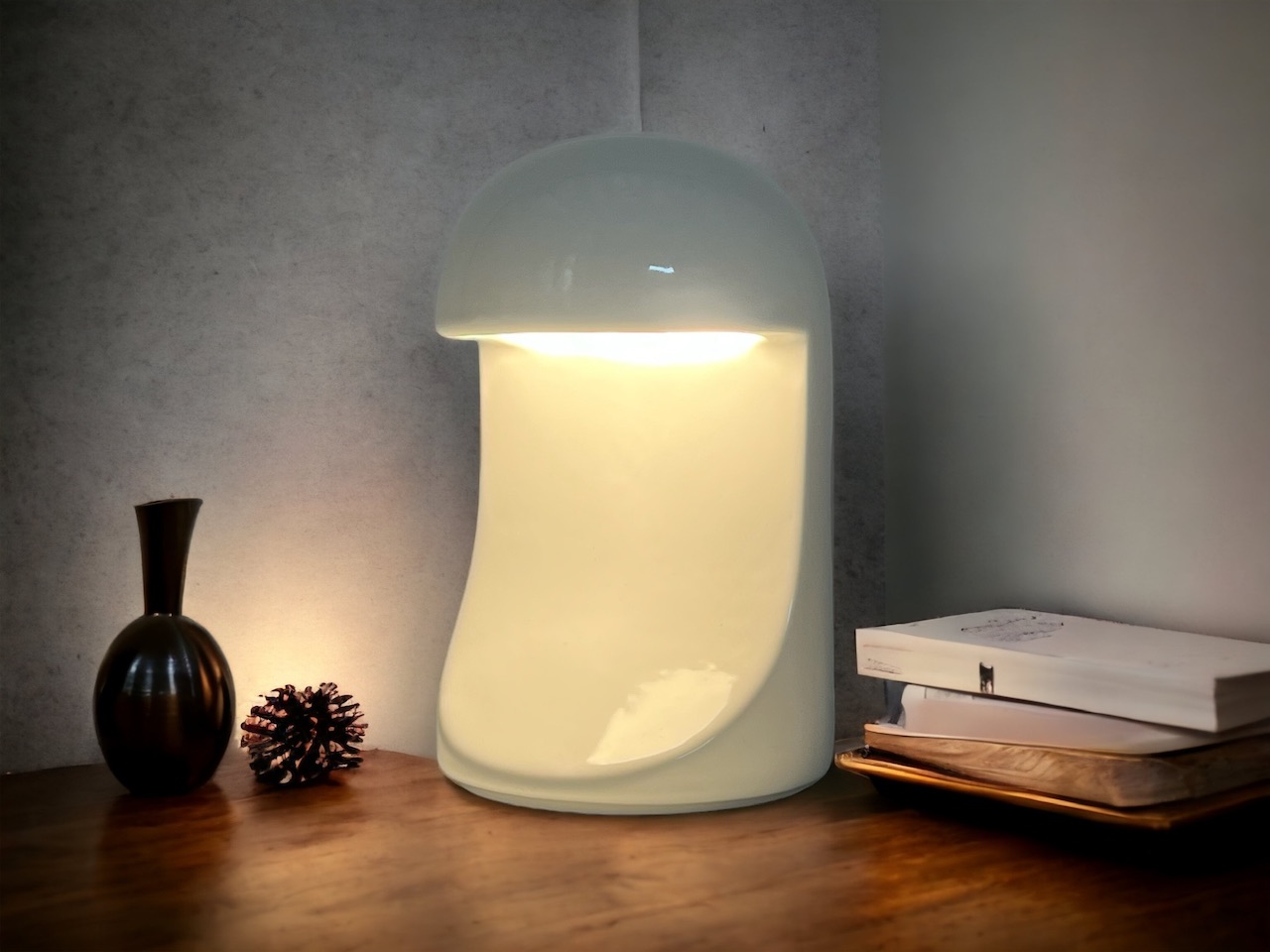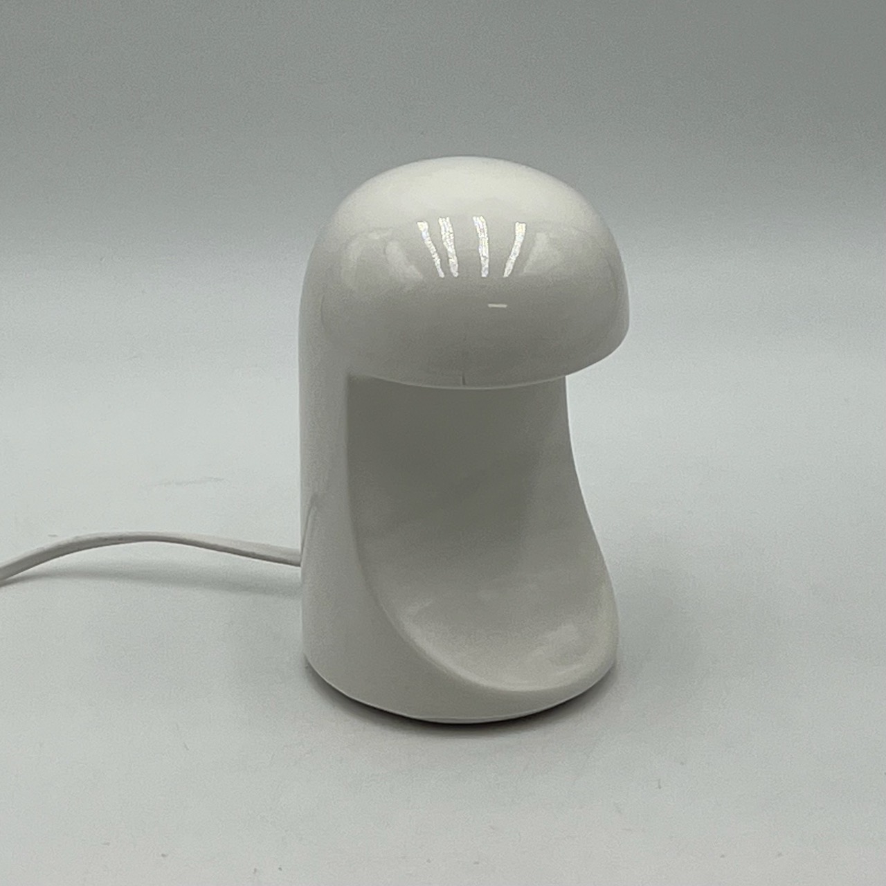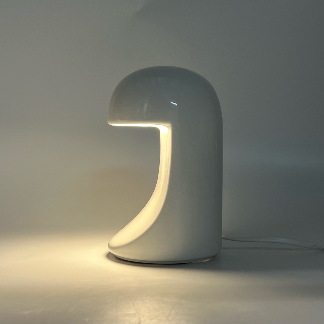 Iconic and award winning table lamp designed by Marcello Cuneo and produced by Gabbianelli in the 60s. Single white ceramic body, beautiful lighting effect.