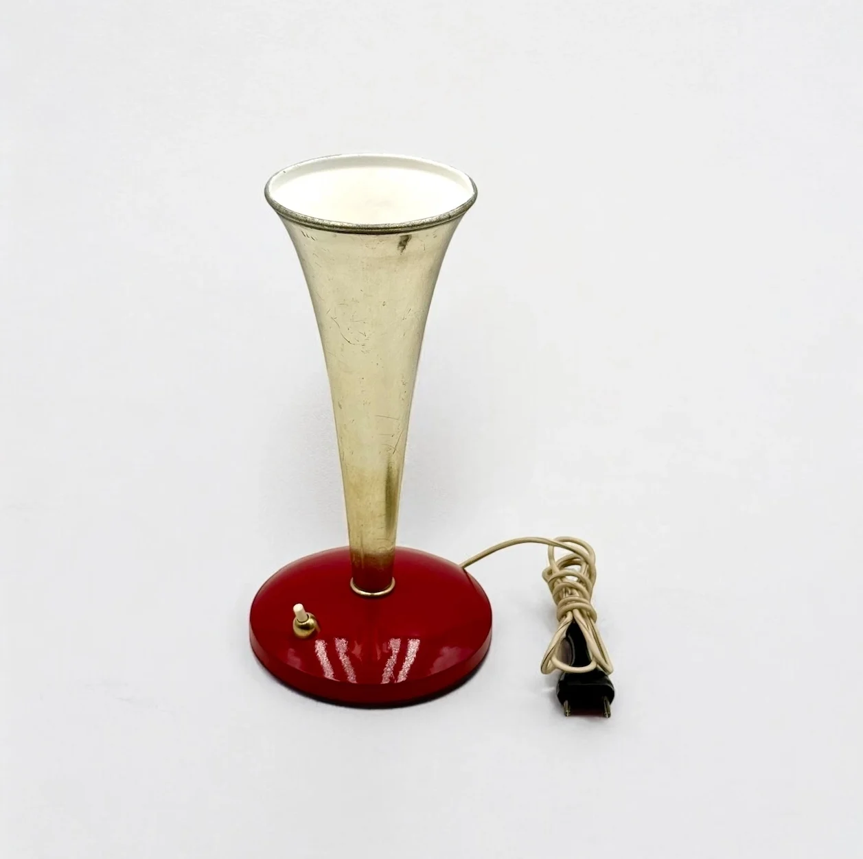 Mid Century Cone Lamp with Red Base and Golden Shade