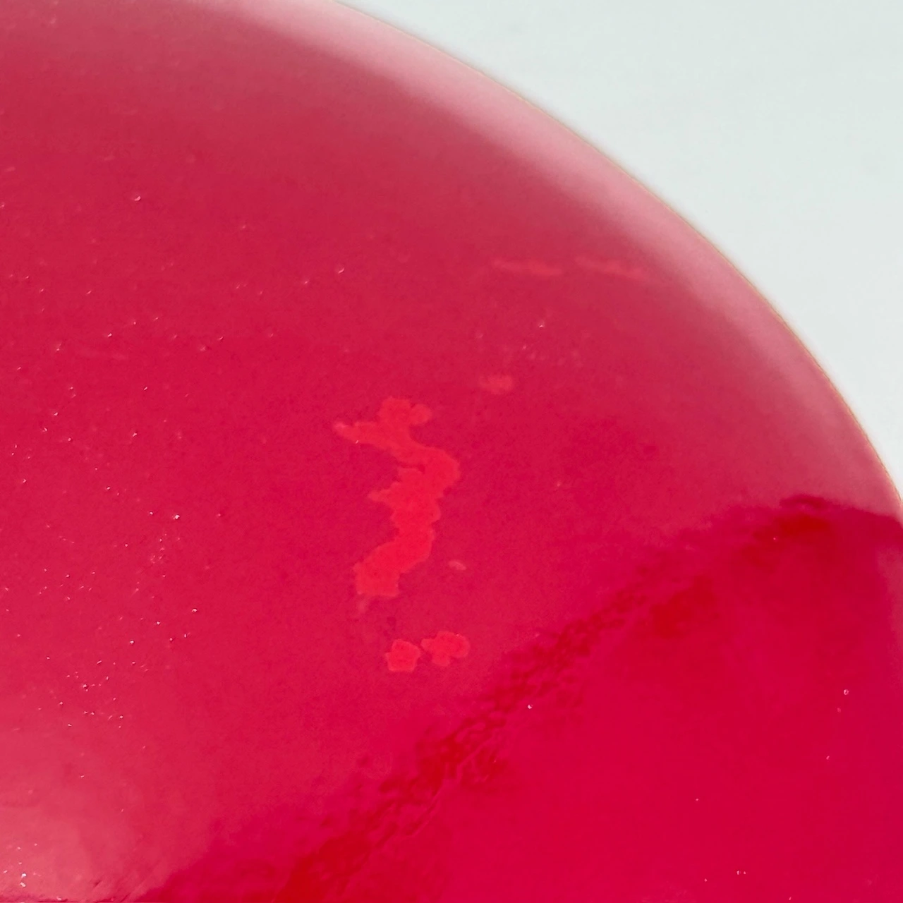 • condition. very good vintage conditions. Scattered signs and some chips in the red enamel at the base, signs, stains and very slight deformations of the conical light diffuser.