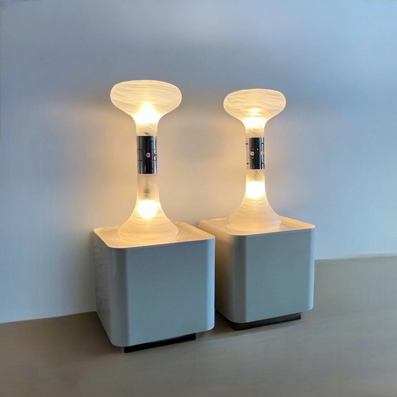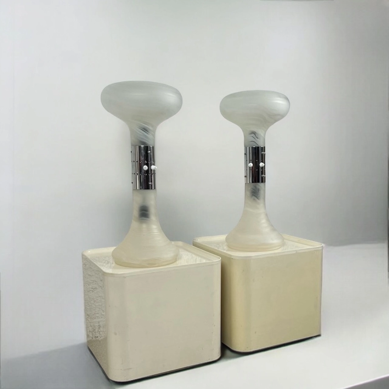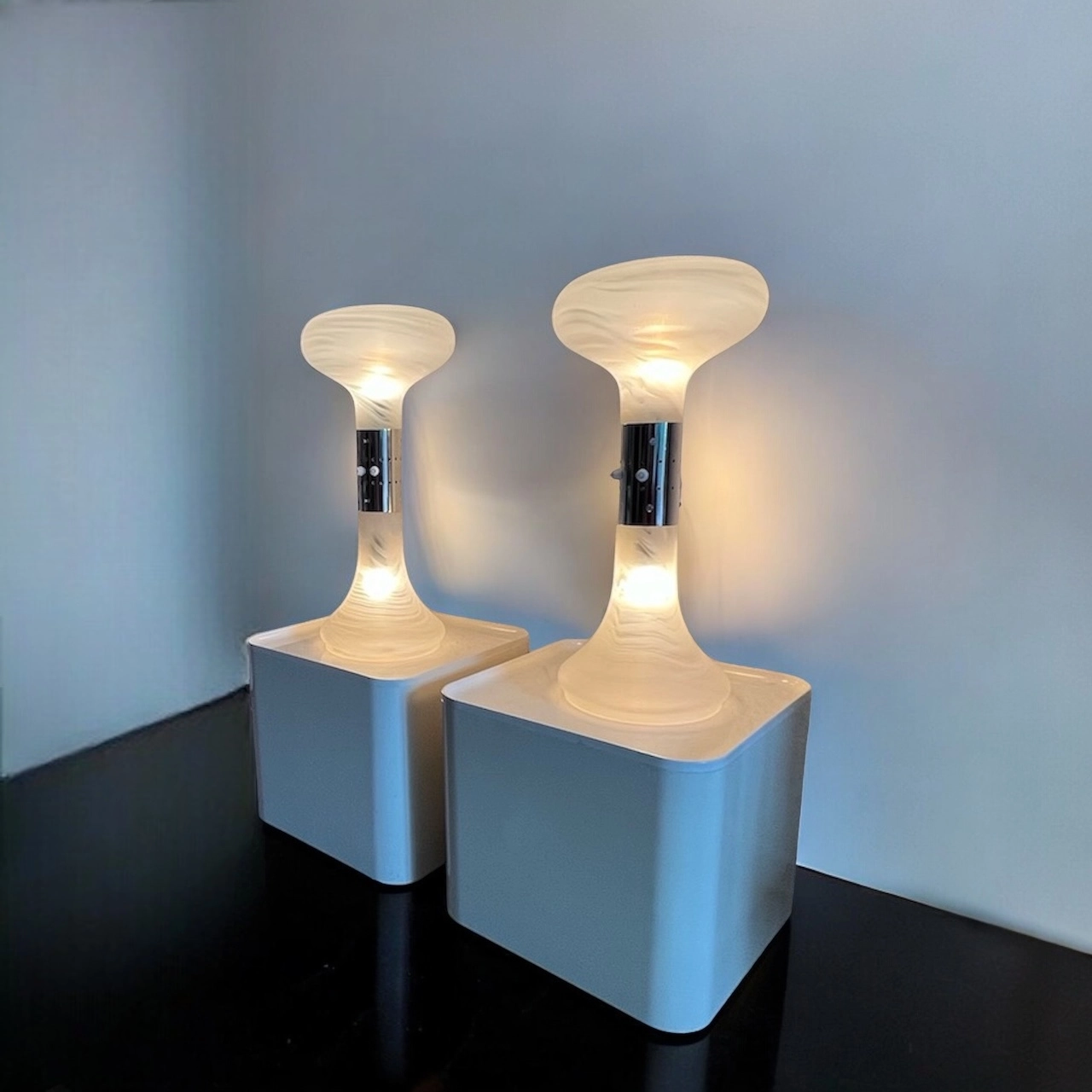 Bring the timeless beauty of Murano craftsmanship into your favorite room with this rare, elegant pair of vintage 70s lamps.