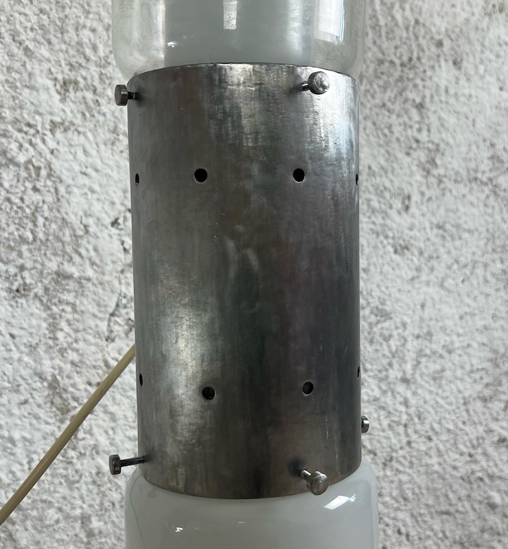 Great vintage conditions, with healthy glasses and shining chromed details. All the components including the bulb holder are authentic. The electrical wiring has been replaced.