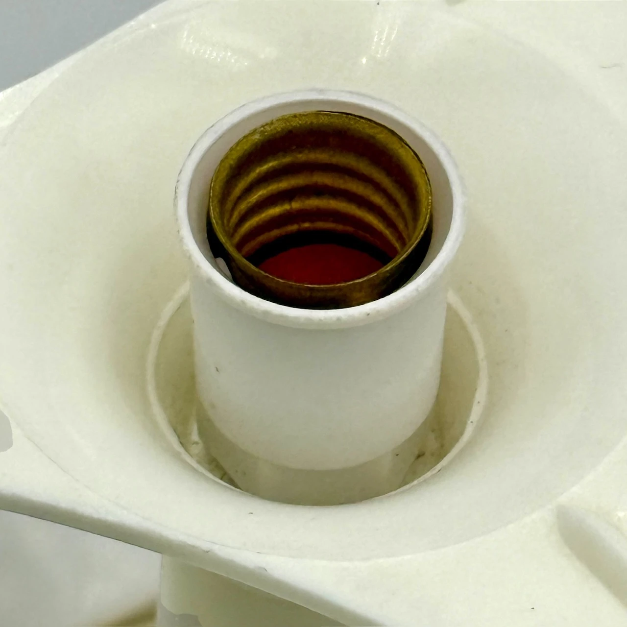A radiant icon of 1970s Space Age design: this mushroom table lamp pairs a bold red dome with a soft ivory tulip base. Fully original, with a mesmerizing glow when lit. A rare collectible with timeless Space Age charm.