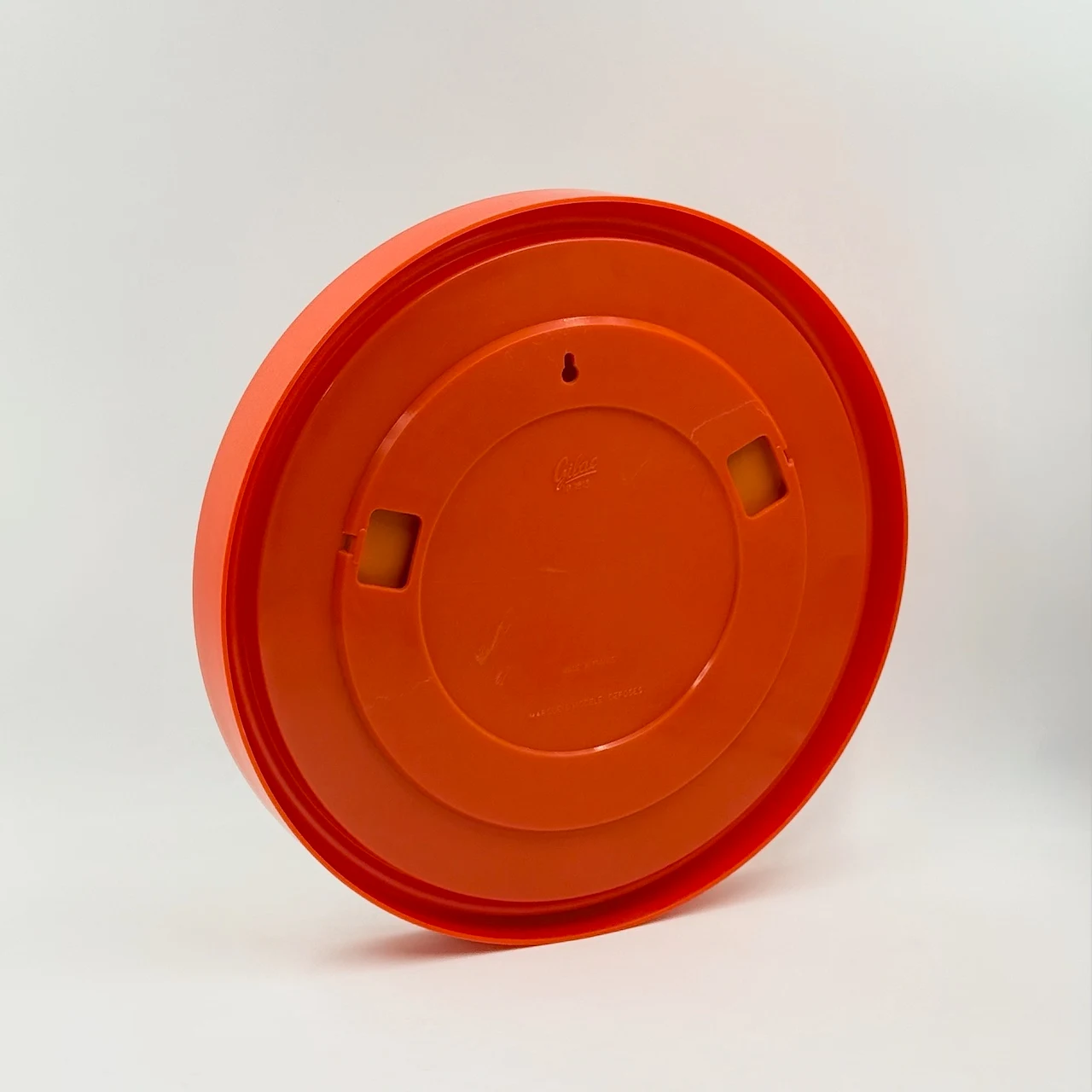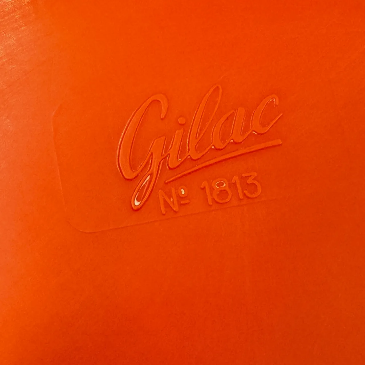 The orange gilac mirror is a refined expression of 1970s French design, where everyday objects were reimagined through bold color and industrial materials. Produced by Gilac, a manufacturer known for its innovative use of plastic, this piece captures the optimism and experimental spirit of the Space Age era. Notably, this model No. 1813 is part of a patented design, highlighting the brand’s commitment to functional innovation and distinctive form.