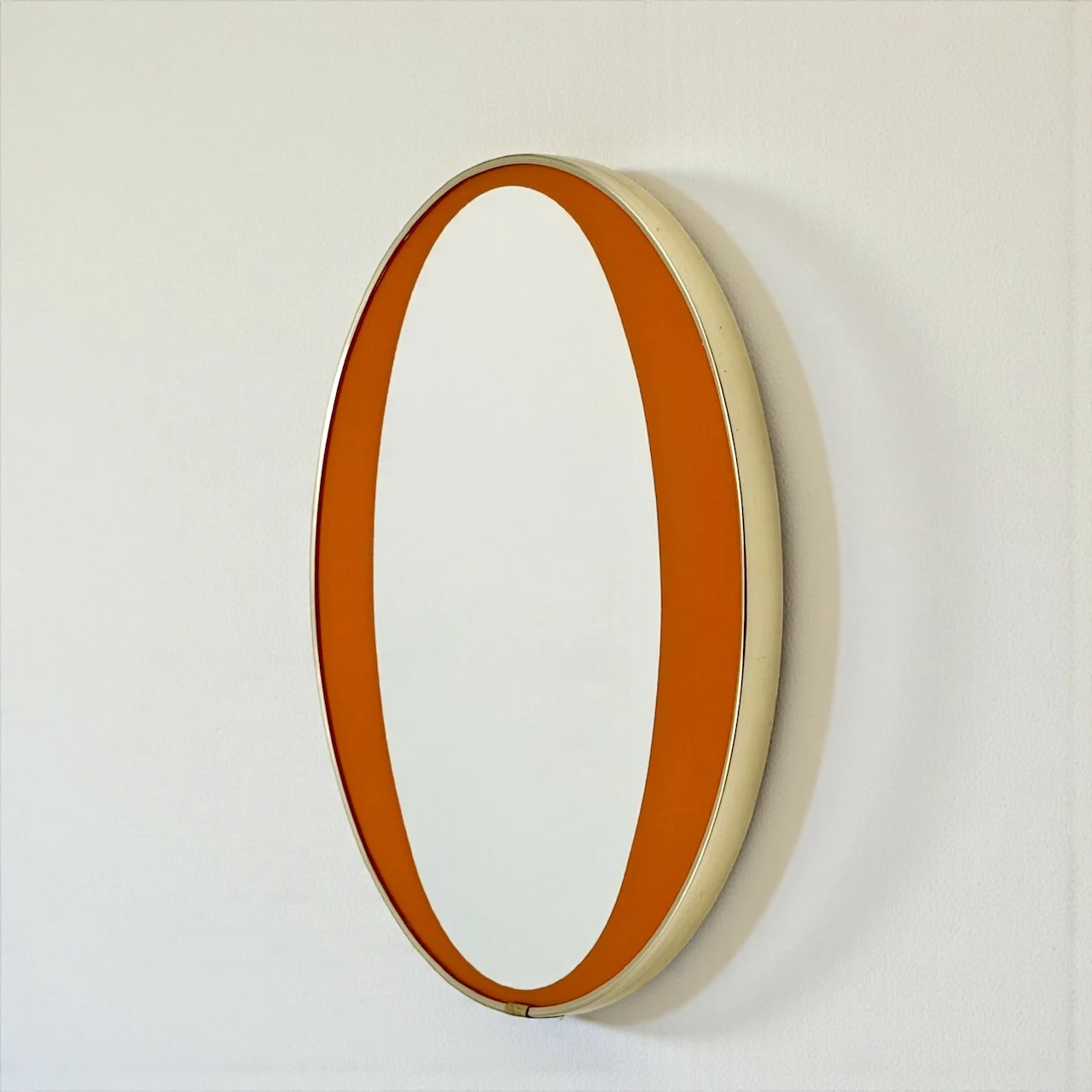Selected as an editor’s pick, this orange mid century mirror stands out for its rarity, material integrity, and timeless modernist appeal. A collectible object that brings restrained color and design history into contemporary interiors.