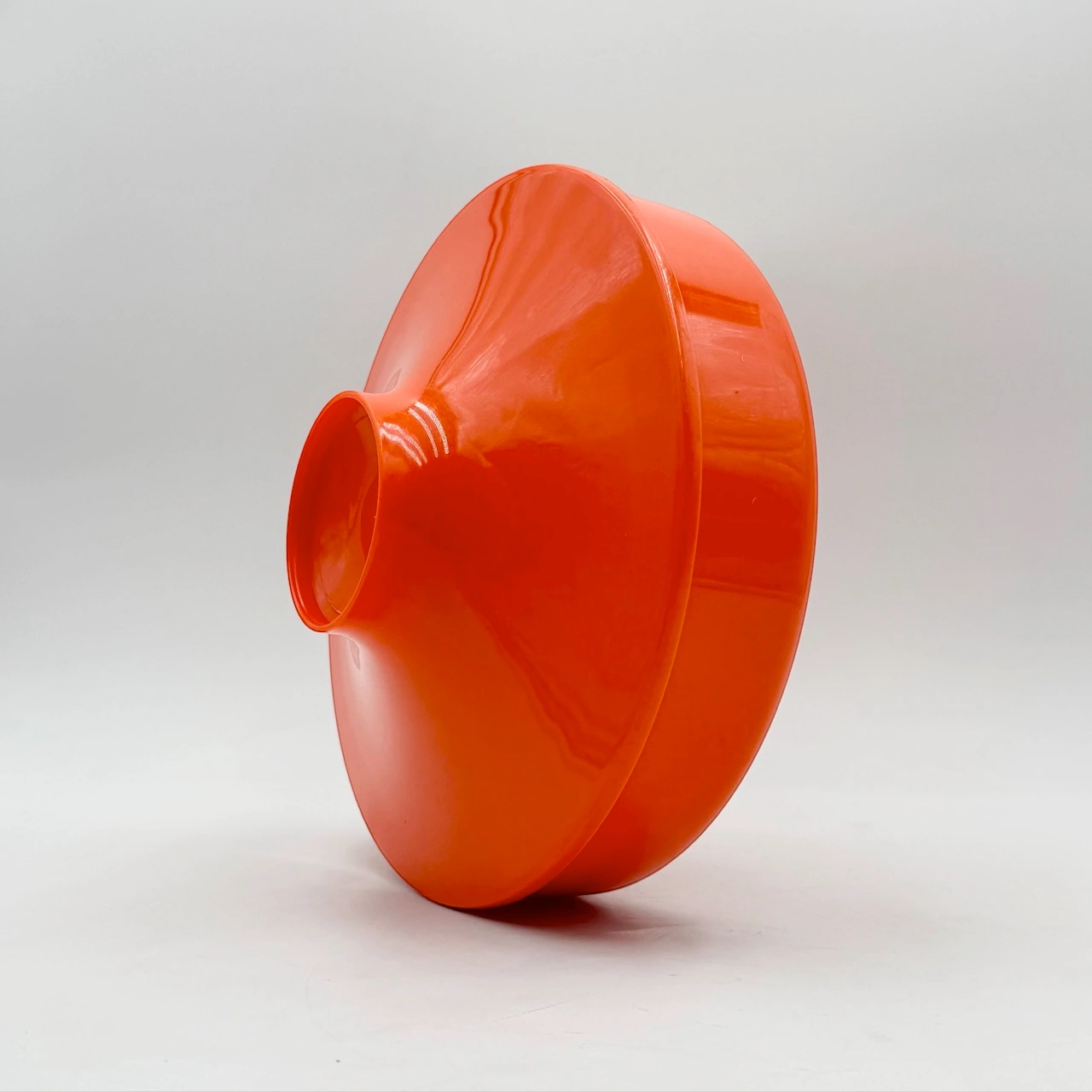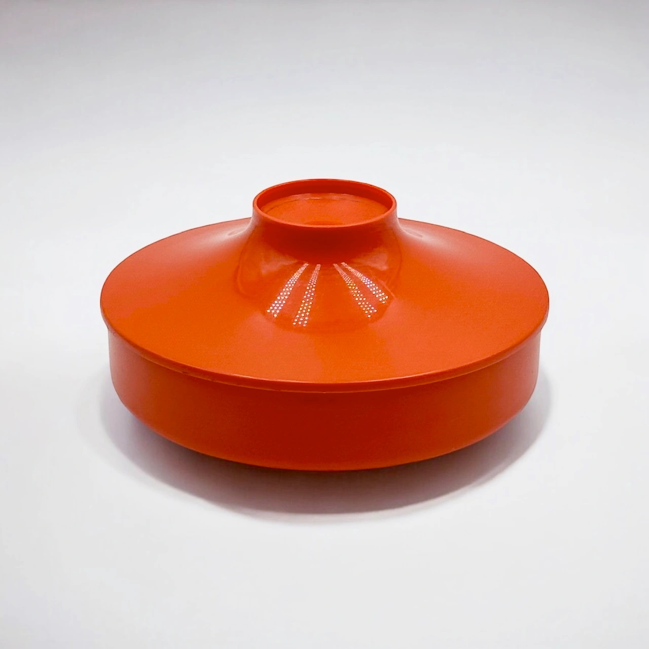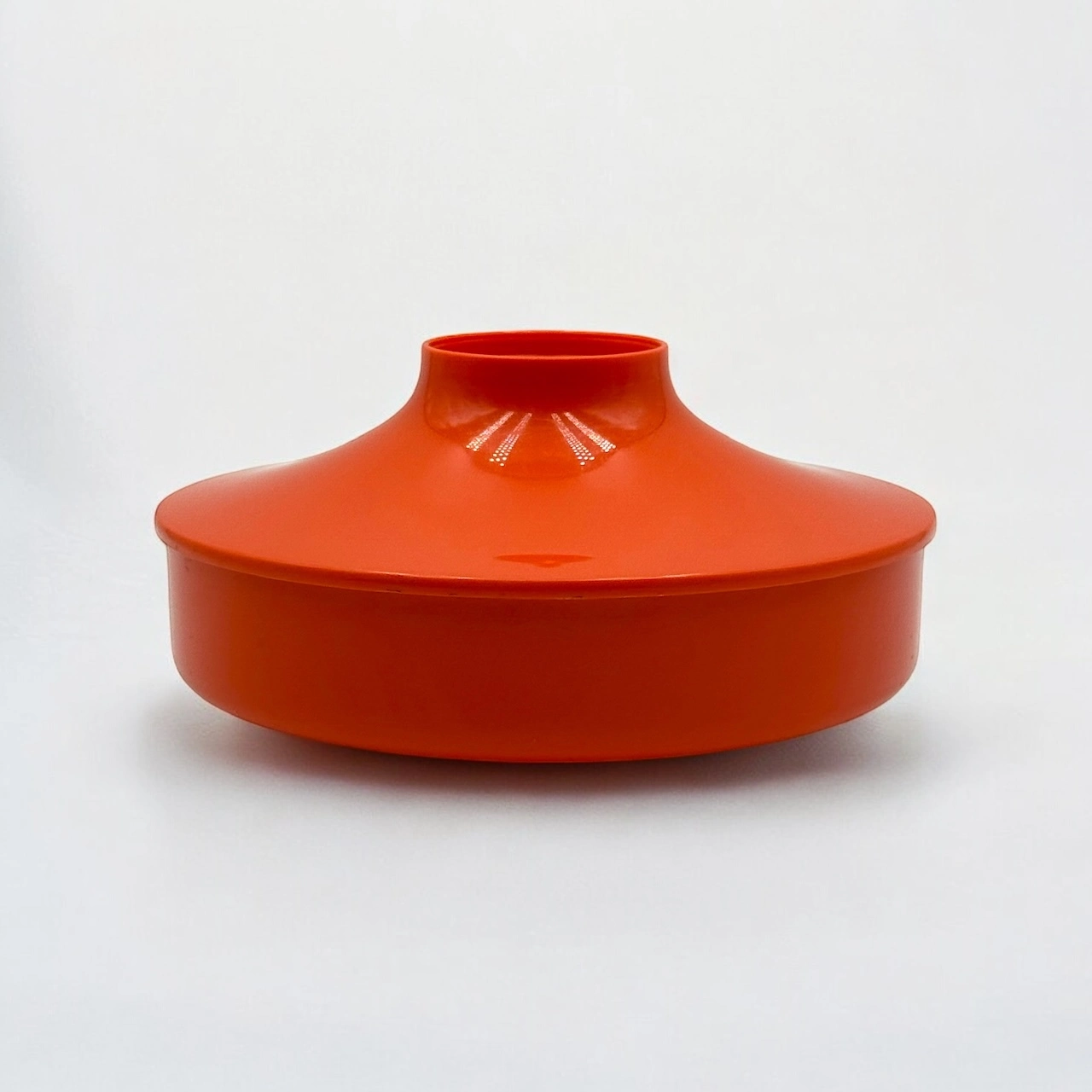 The bright orange hue, the UFO-like shape and the quality of plastic are distinctive features of the space age period of the iconic Italian brand. This authentic and versatile vintage design piece will give a vintage and chic touch in every home setting.