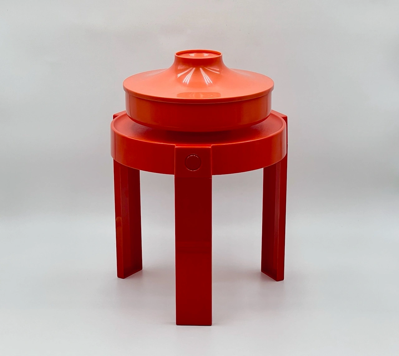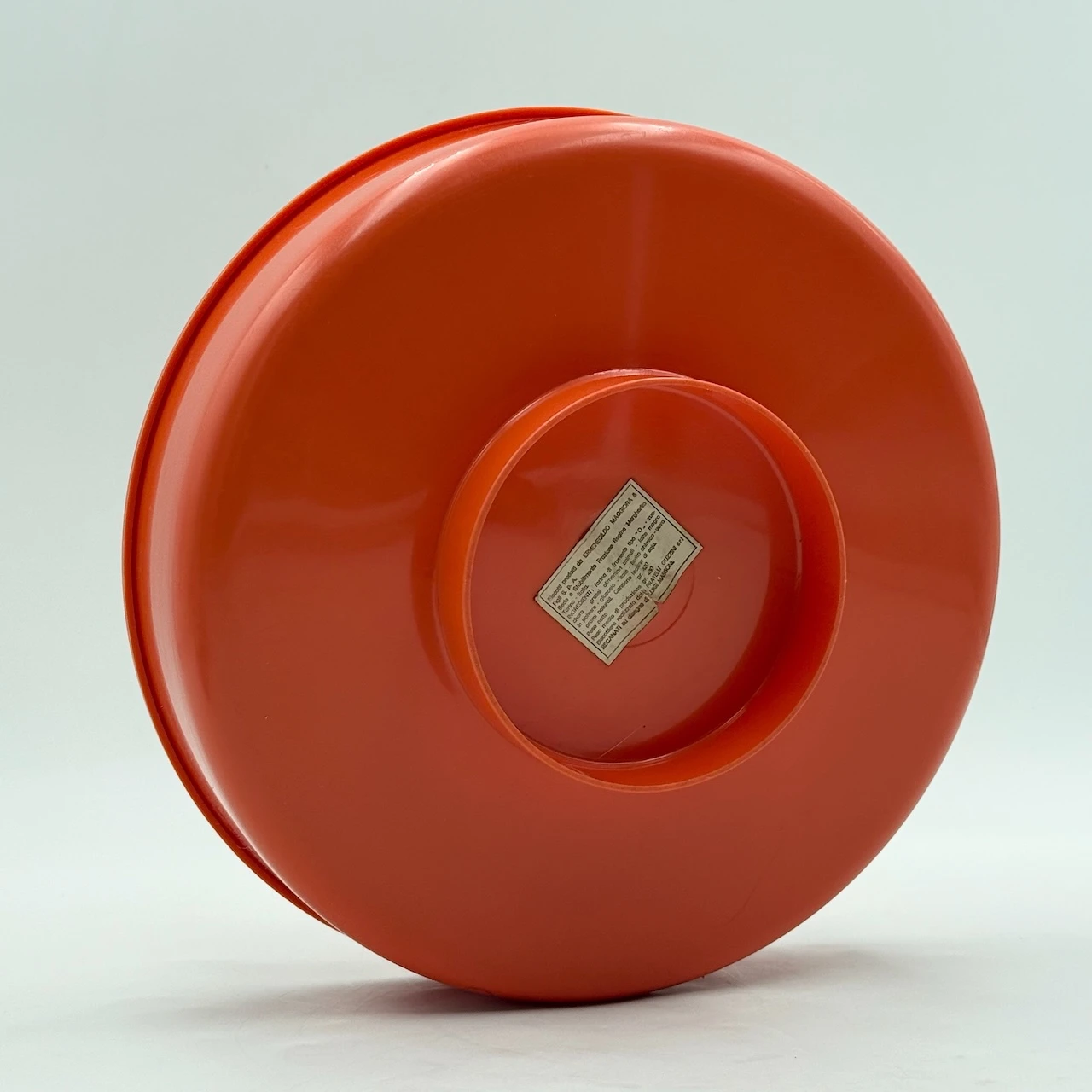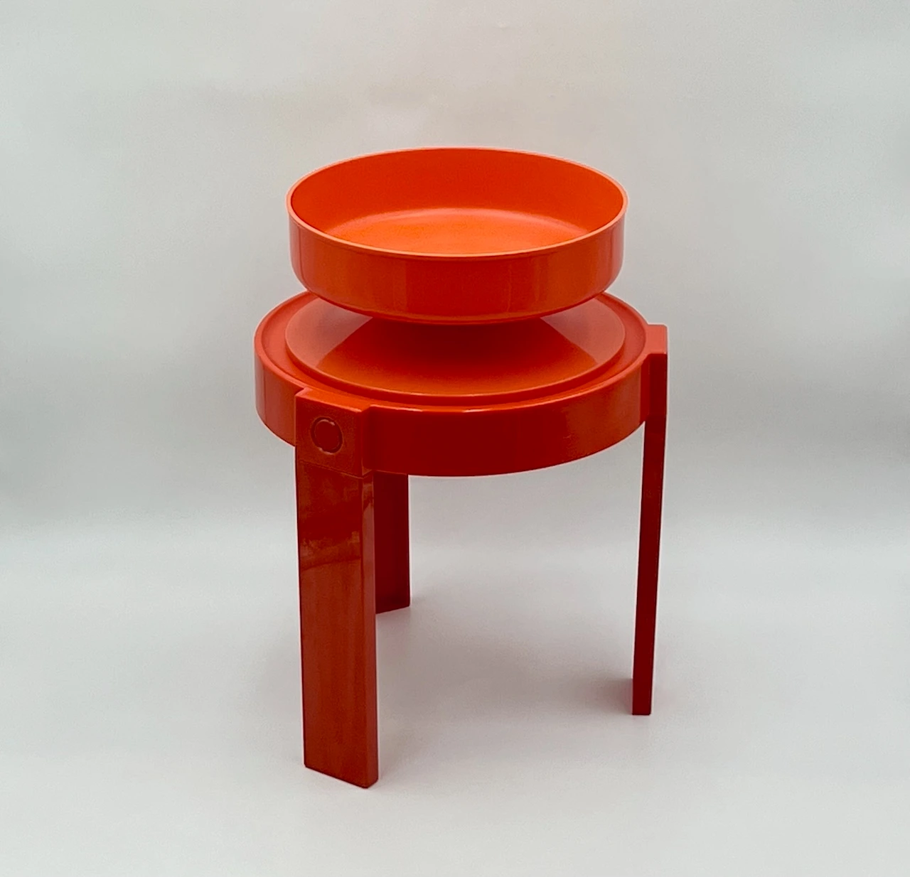 The bright orange hue, the UFO-like shape and the quality of plastic are distinctive features of the space age period of the iconic Italian brand. This authentic and versatile vintage design piece will give a vintage and chic touch in every home setting.